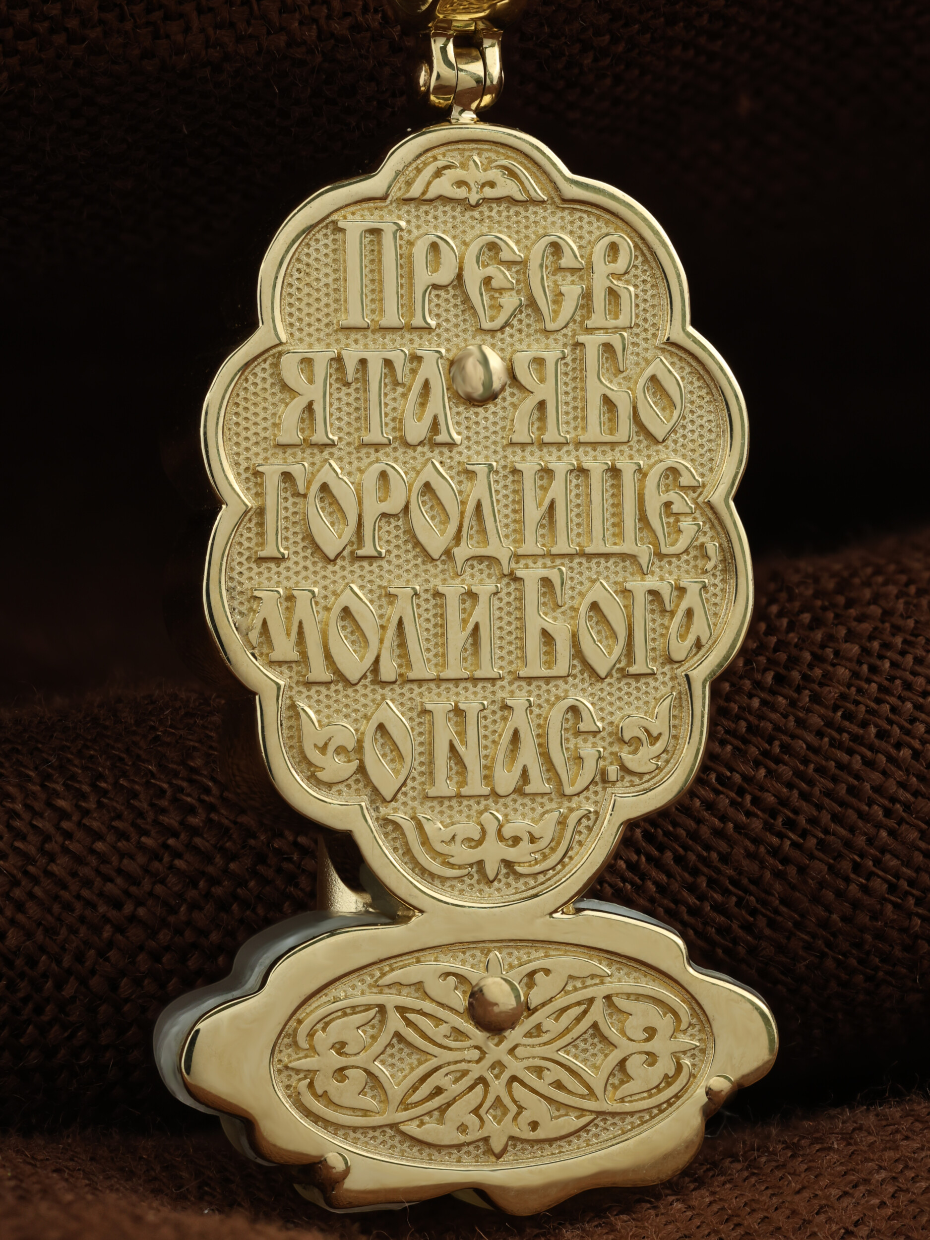 На оборотной стороне образка помещена молитва: «Пресвятая Богородице, моли Бога о нас.»