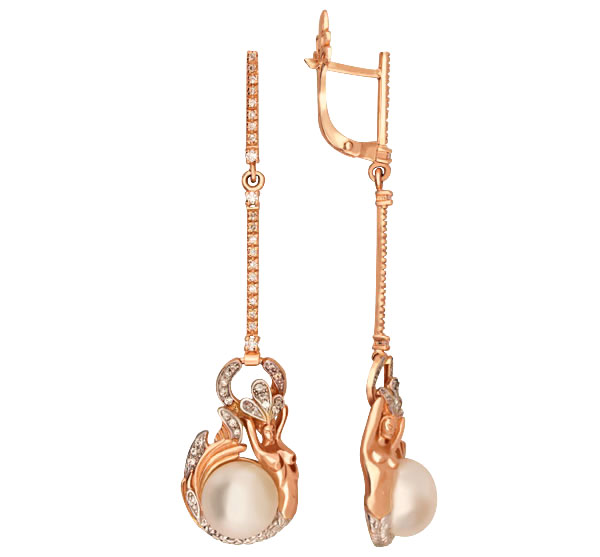Серьги из золота c бриллиантами и жемчугом
