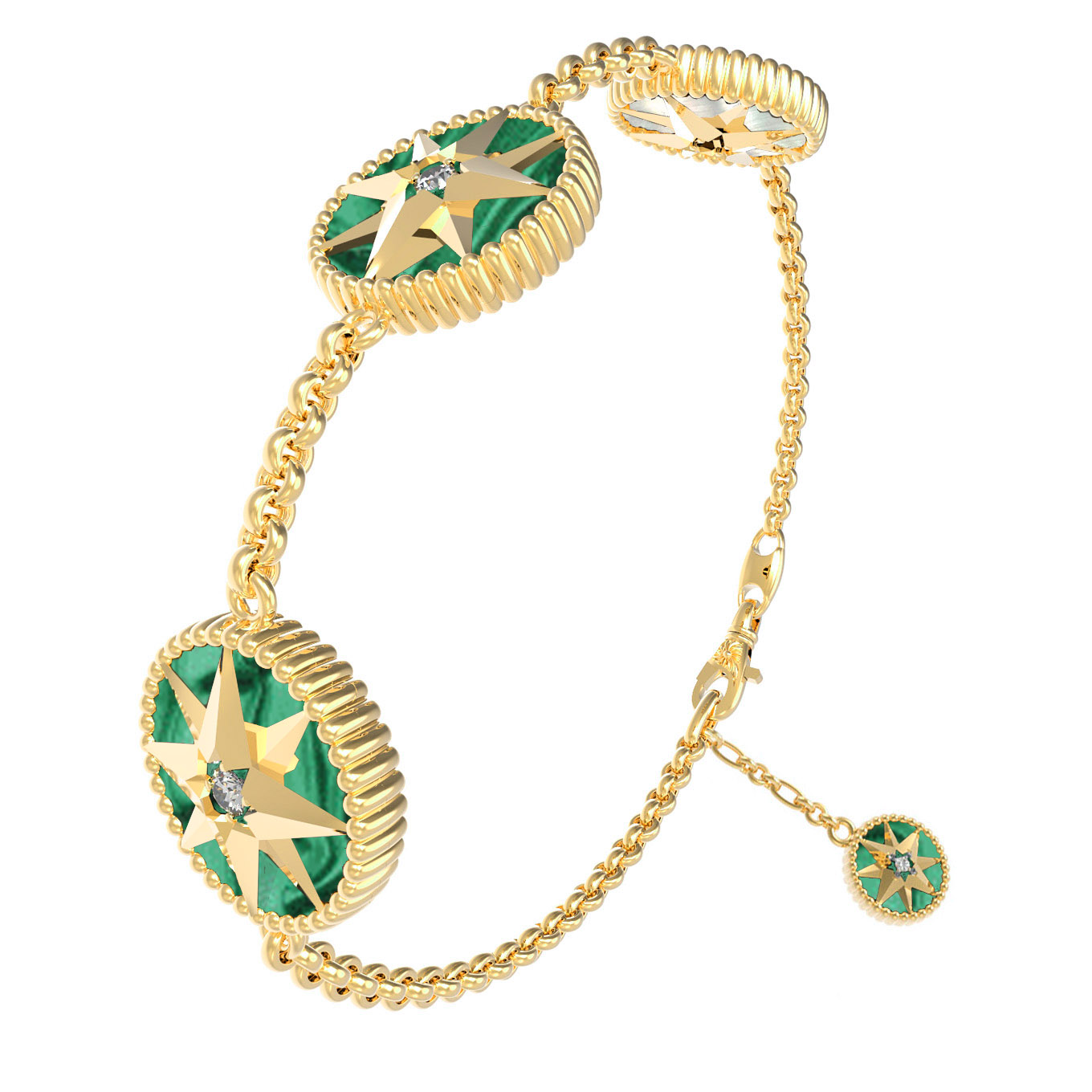 Браслет из лимонного золота c фианитом, малахитом и перламутром