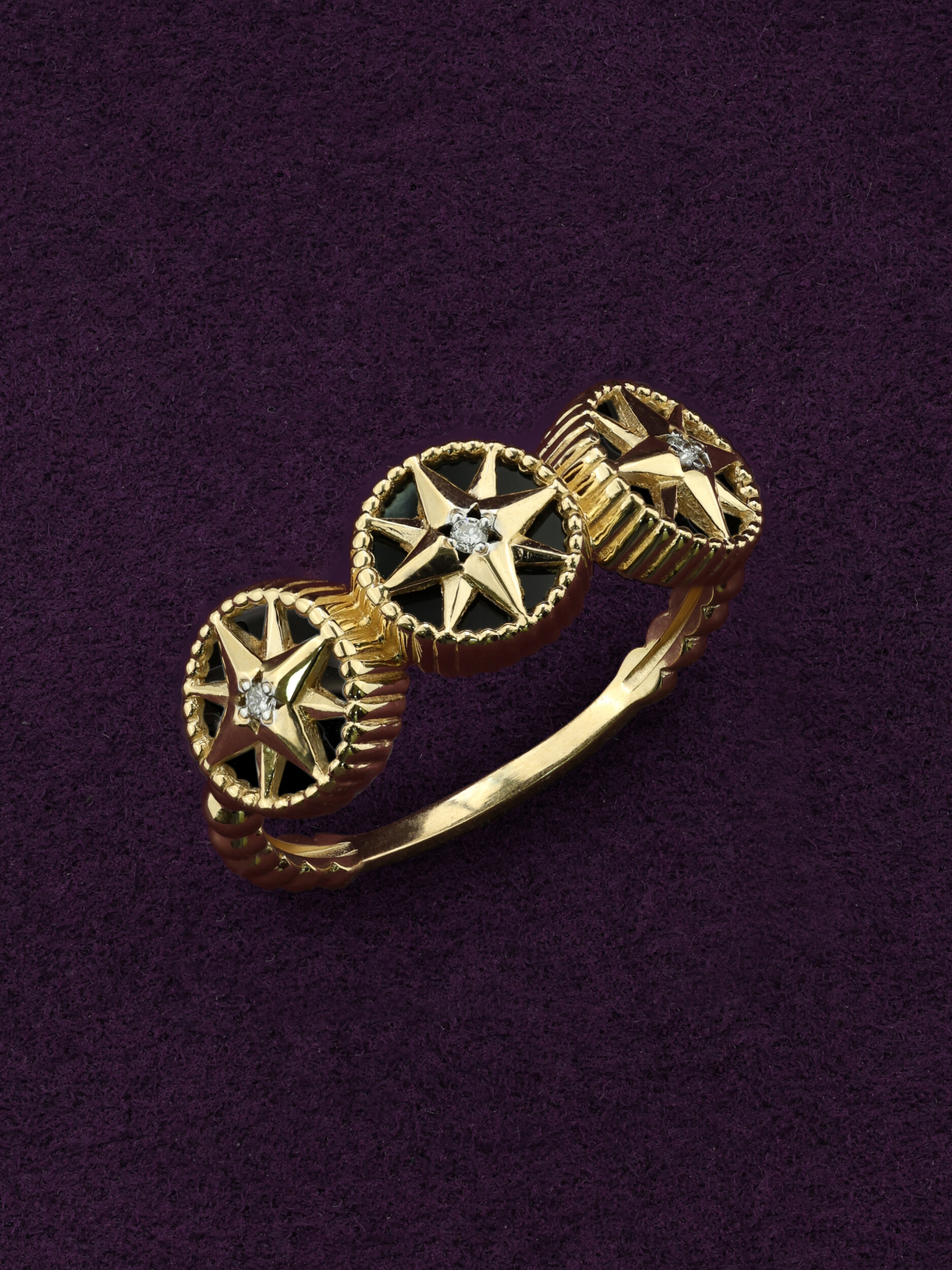 Кольцо из лимонного золота c бриллиантами и ониксом