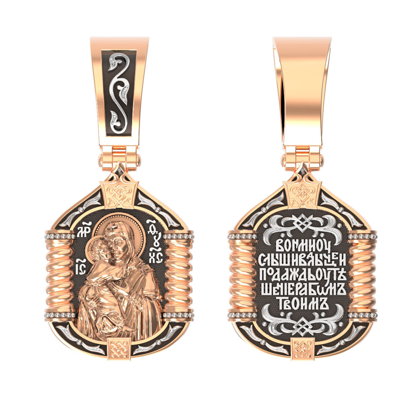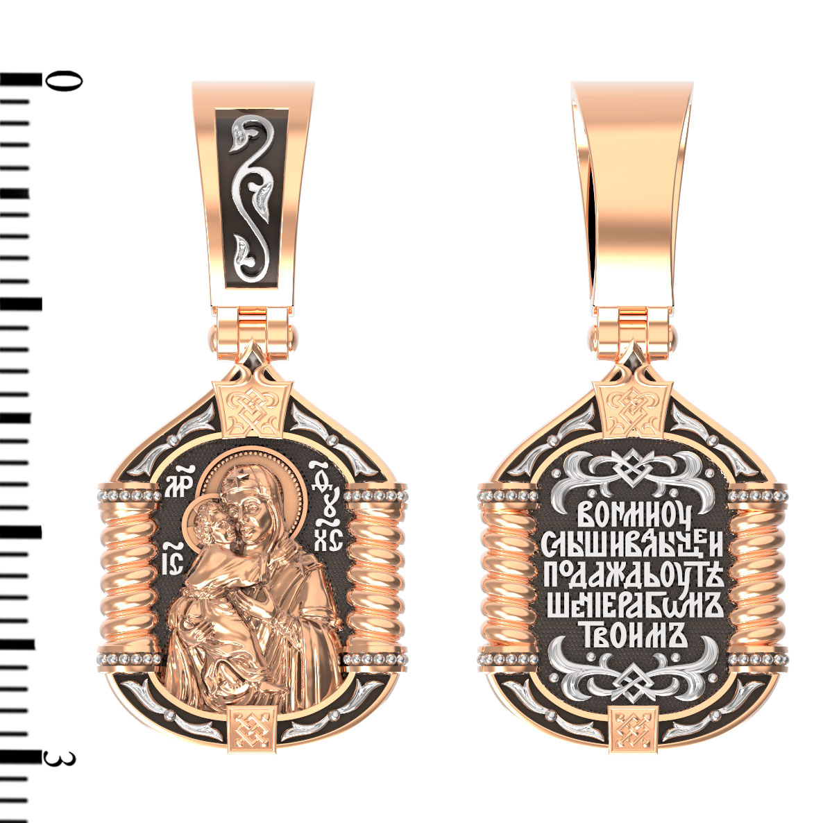 На лицевой стороне образка изображена Владимирская икона Божией Матери.