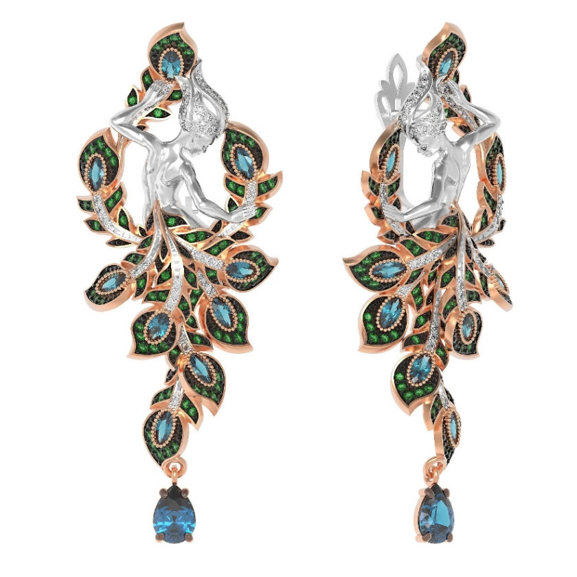 Серьги из золота c фианитом и топазом London Blue