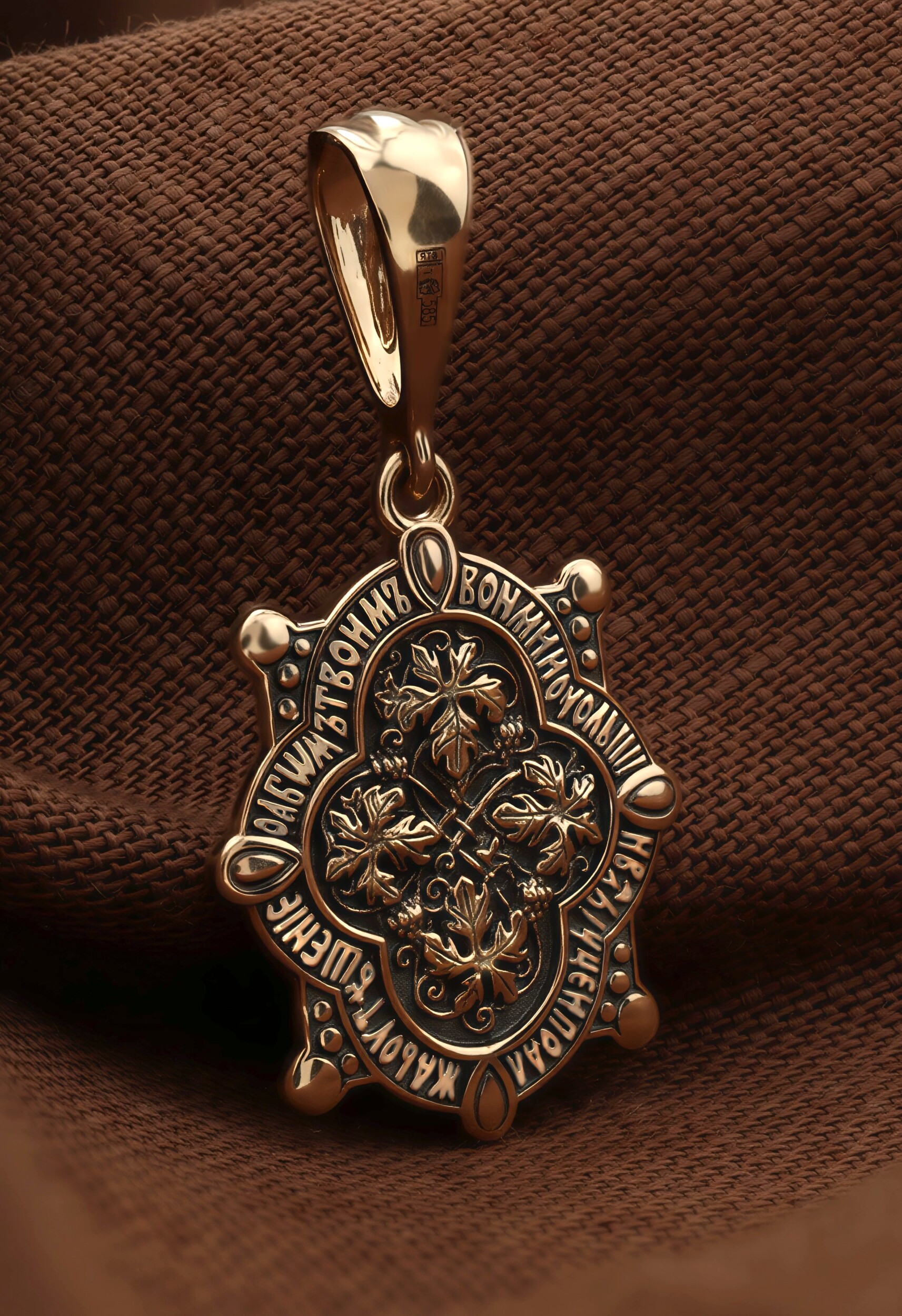 На оборотной стороне изображена виноградная лоза — символы церкви и евхаристии. «Я есмь лоза, — говорил Иисус Христос Своим ученикам, — а вы ветви; кто пребывает во Мне, и Я в нем, тот приносит много плода» (Ин. 15, 5), «Я есмь истинная виноградная лоза, а Отец Мой — виноградарь». Вокруг образка написана молитва к Пресвятой Богородице: «Вонми и услыши, Владычице, и подаждь утешение рабом Твоим».