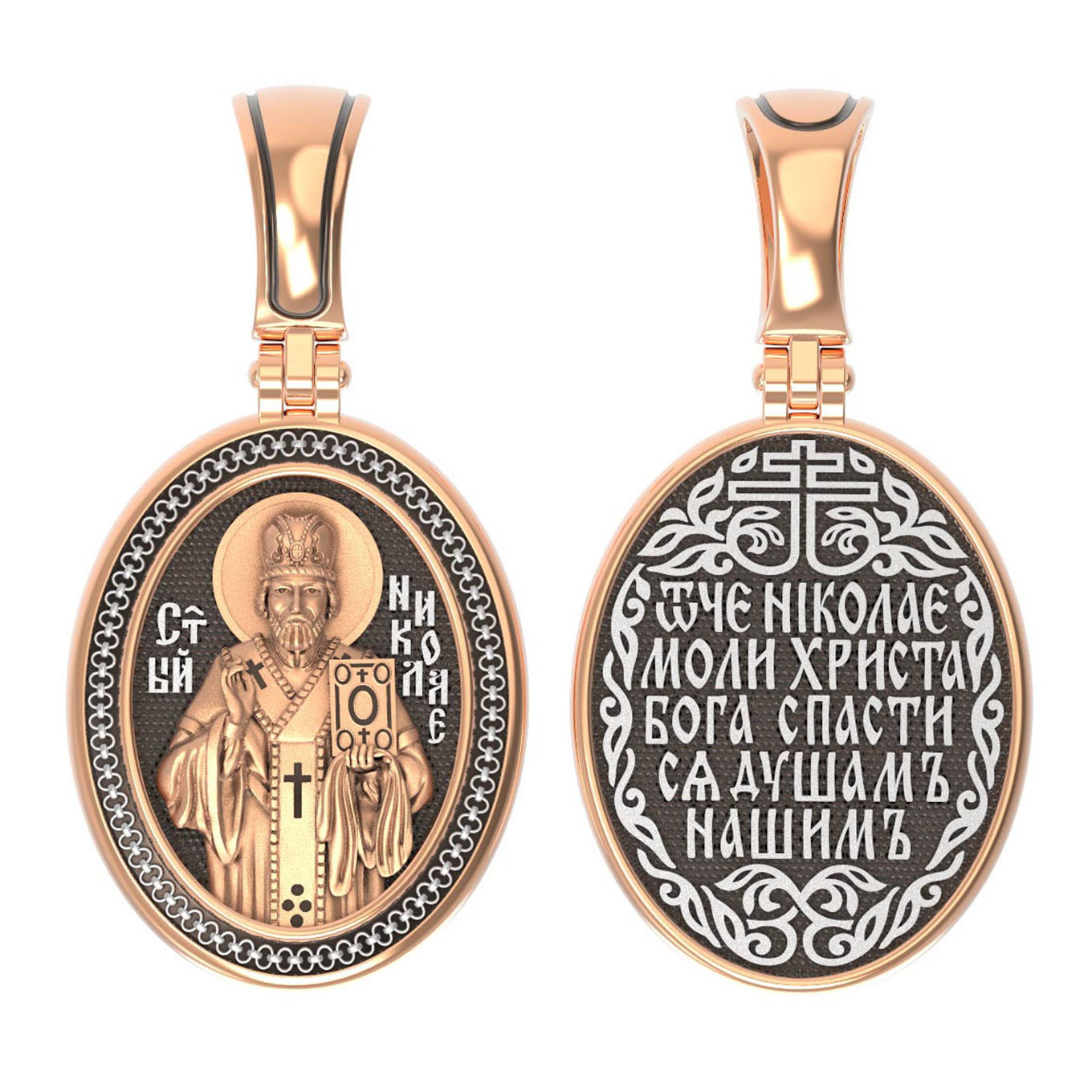 Лицевую сторону возглавляет икона святителя Николая Чудотворца. Святитель Николай родился во второй половине III века в Малой Азии в Ликийском городе Патары. С рождения Божий Угодник проявлял необыкновенные дарования. Сохранилось Предание, что во время крещения он, никем не поддерживаемый, простоял в купели три часа. С детства святитель избегал пустых развлечений, любил молитву, прекрасно учился и проводил свободное время за чтением Священного Писания. По достижении зрелого возраста жители Патар выбрали его своим пресвитером. Несколько лет спустя св. Николай стал епископом в городе Миры, столице Ликии.