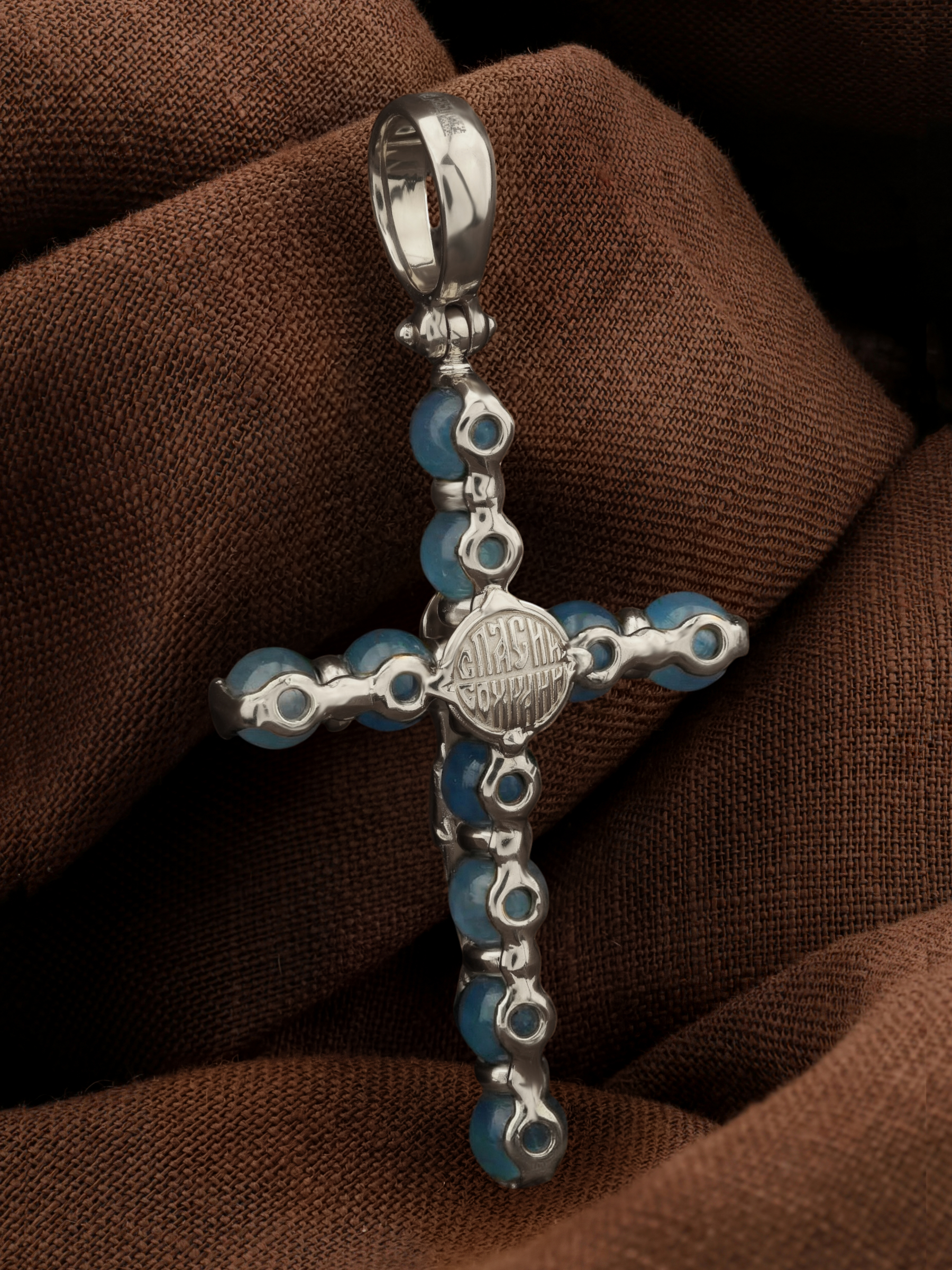 В центрально части оборотной стороны креста написана молитва: «Спаси и сохрани».