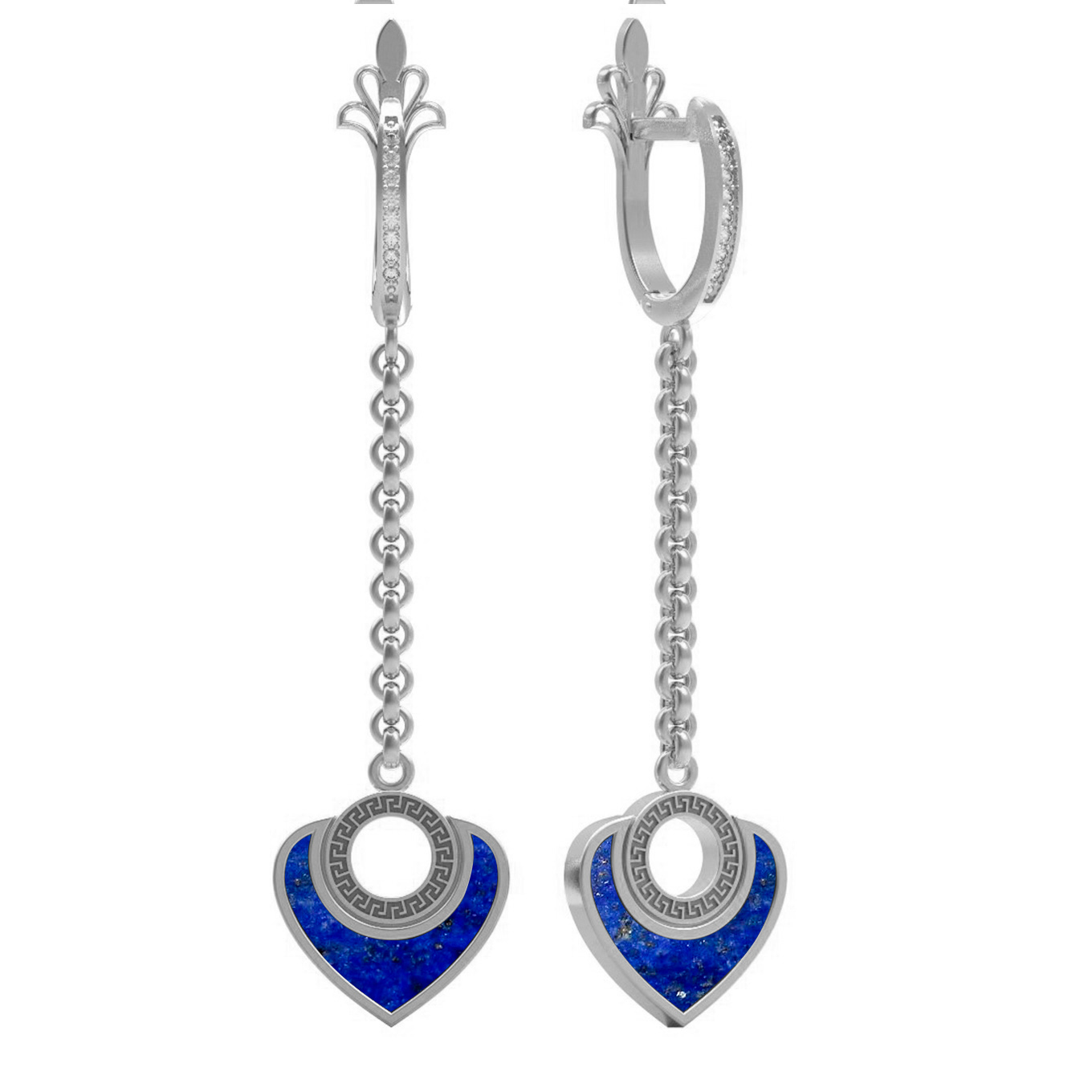 Подвеска из белого золота c фианитом, лазуритом и перламутром