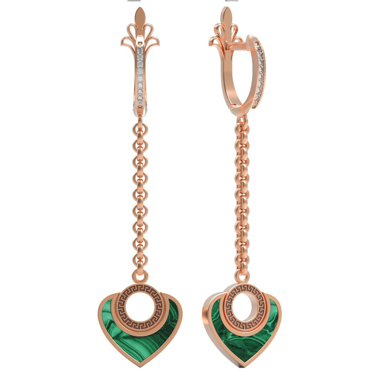 • Серьги из золота c фианитом и малахитом