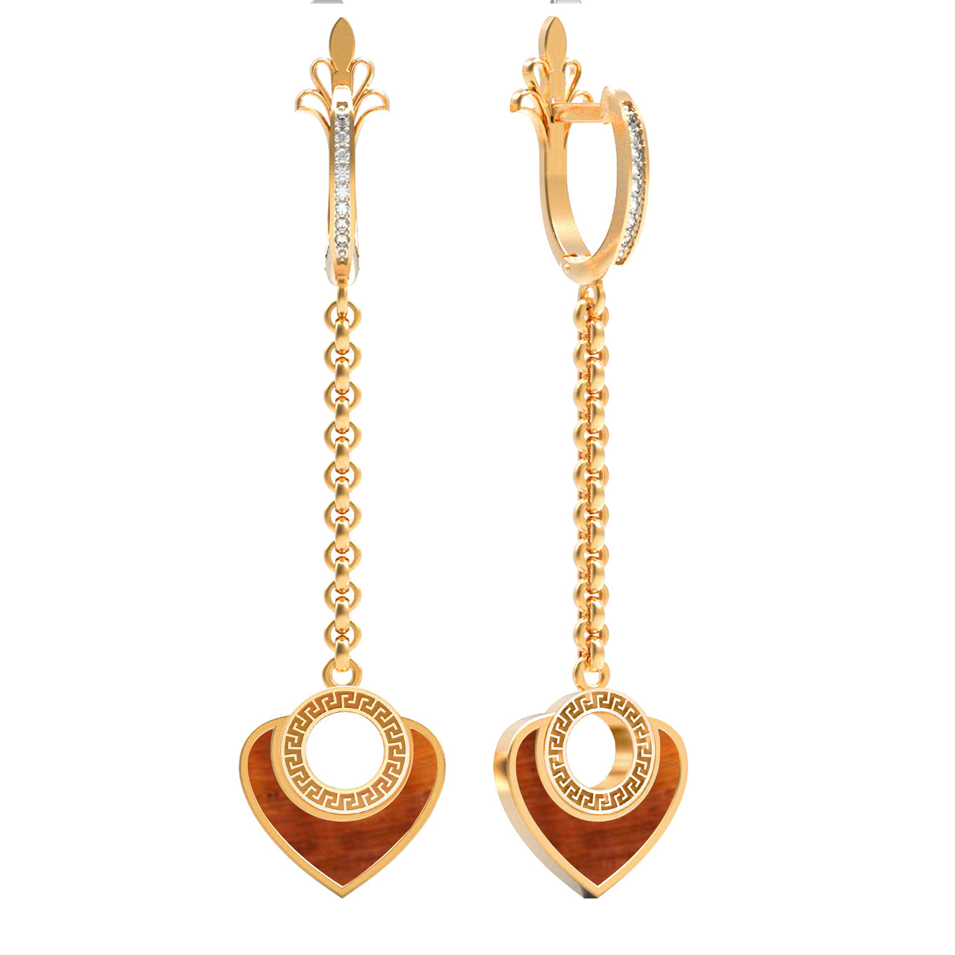 • Серьги из лимонного золота c фианитом и тигровым глазом