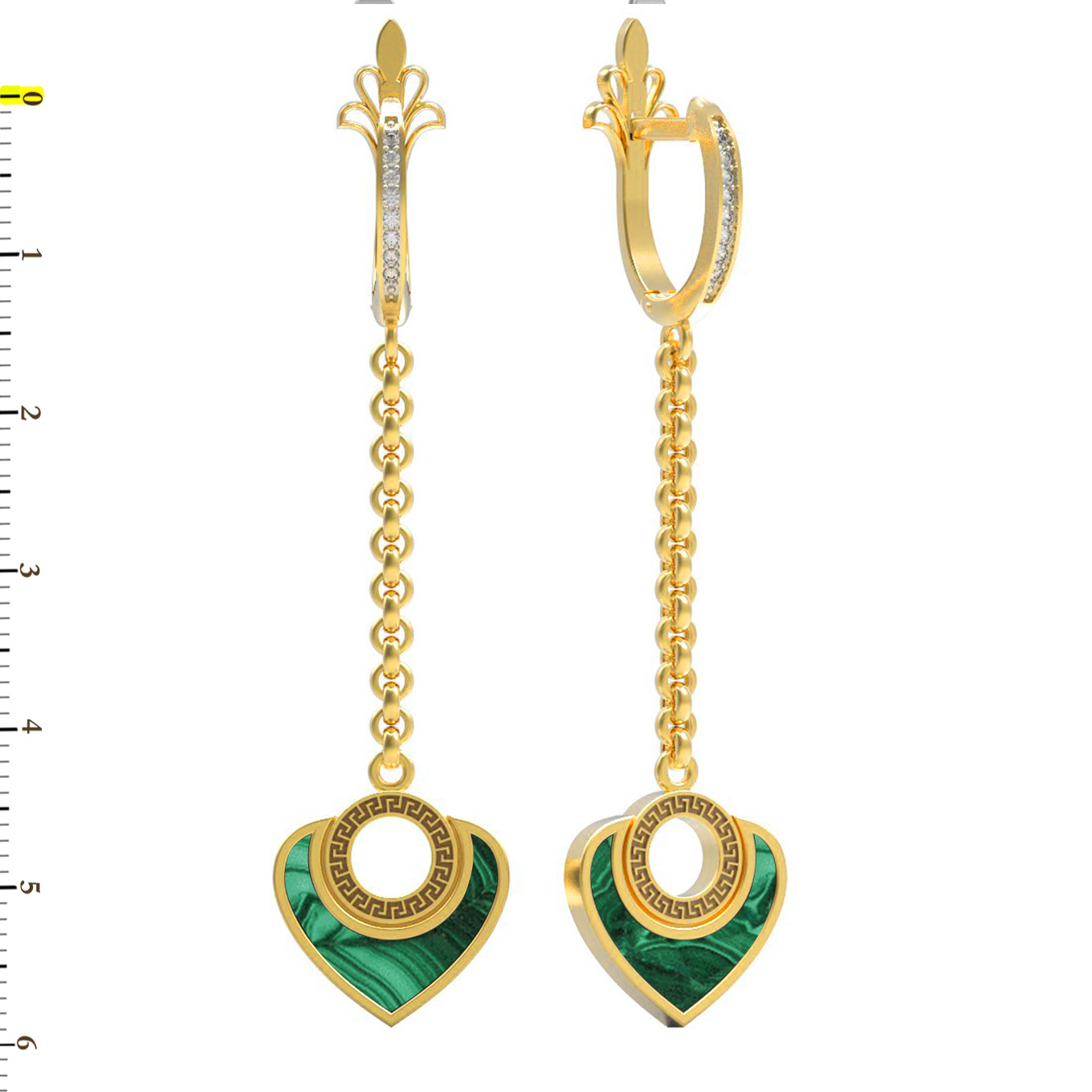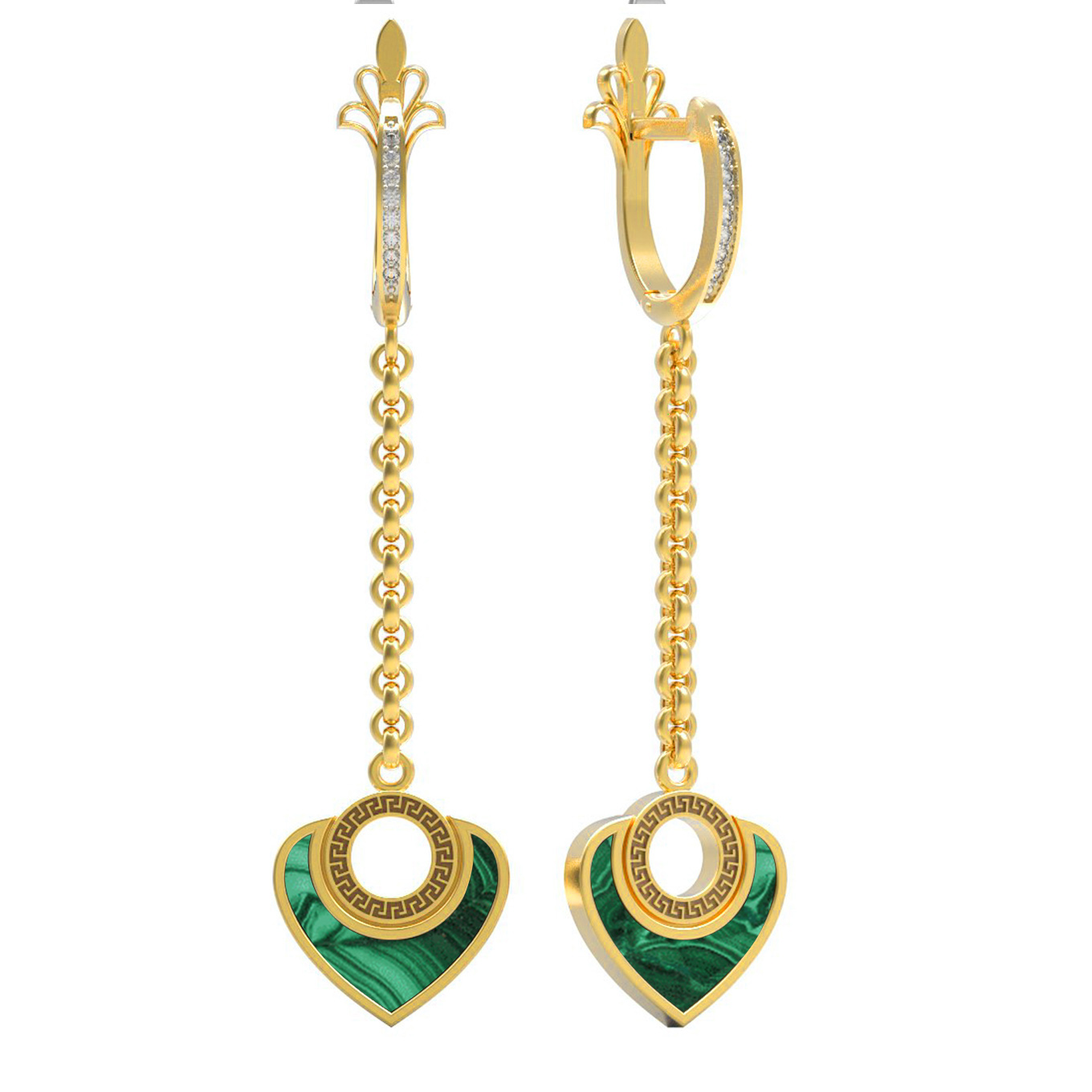 • Серьги из золота c фианитом и малахитом