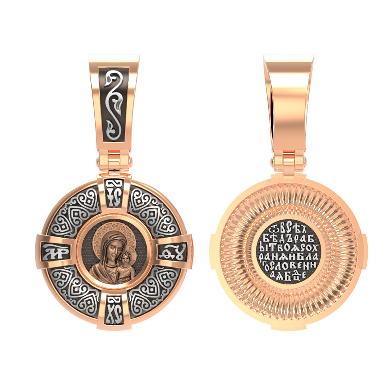 На лицевой части образка изображена Казанская икона Пресвятой Богородицы — одна из самых почитаемых в России чудотворных икон Богородицы. Богословское значение Казанской иконы — указать верующим истинный Путь к спасению, который лежит через Христа. Только Божия Матерь имеет настолько сильное дерзновение к Спасителю, что может ходатайствовать перед Ним за всех верных. Именно этот образ дарится новой повенчанной паре, как хранитель очага и семейная реликвия. Молитва перед Казанской иконой Божьей Матери помогает во всех сложных случаях жизни, в болезнях, во всех печалях, невзгодах, скорбях. Уникальная история появления, чудеса, случившиеся по молитвам православных людей возле образа — все это делает Казанскую Богородицу особенной, среди тысяч других икон.