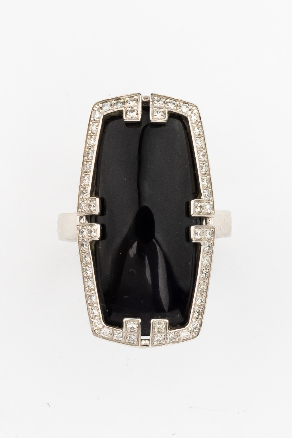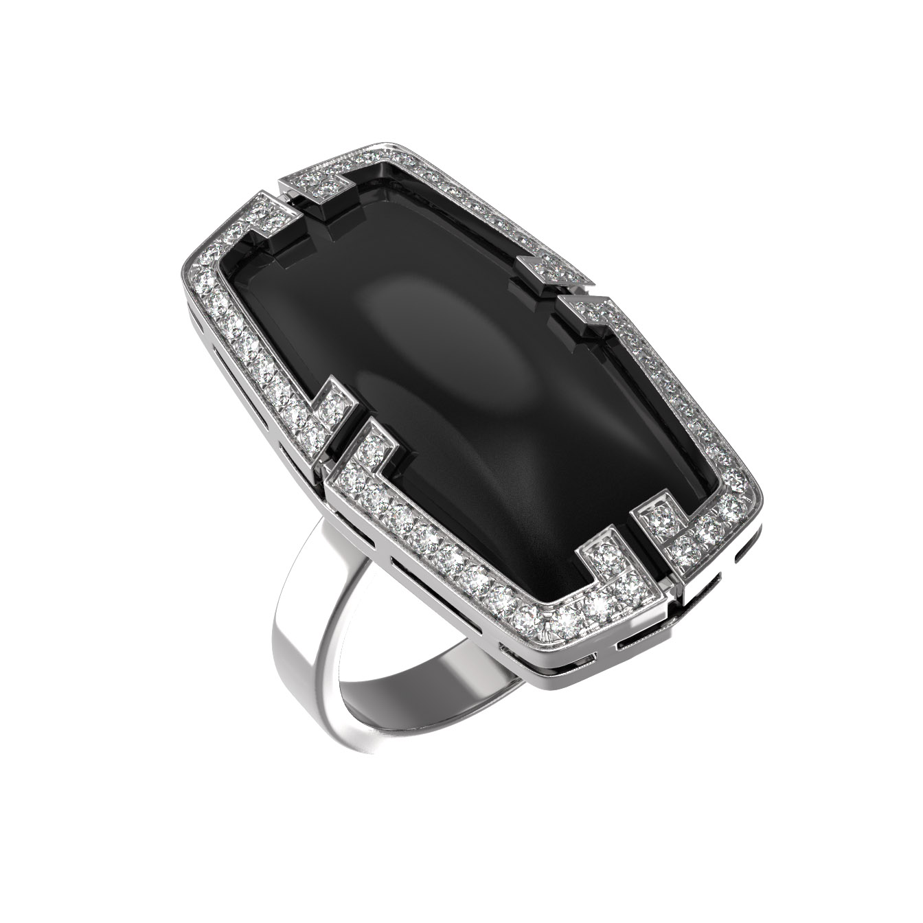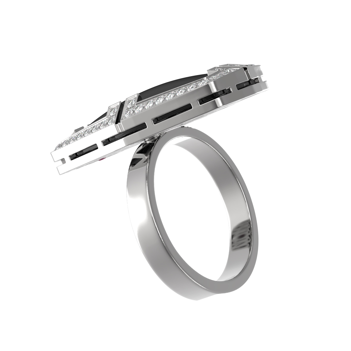 Кольцо из белого золота c бриллиантами, рубином и ониксом