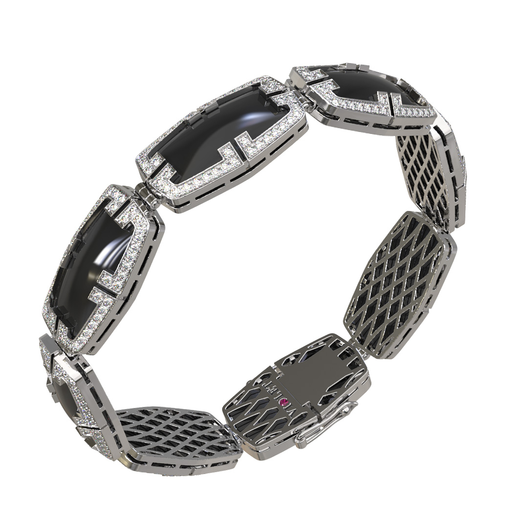 Браслет из белого золота c бриллиантами, рубином и ониксом