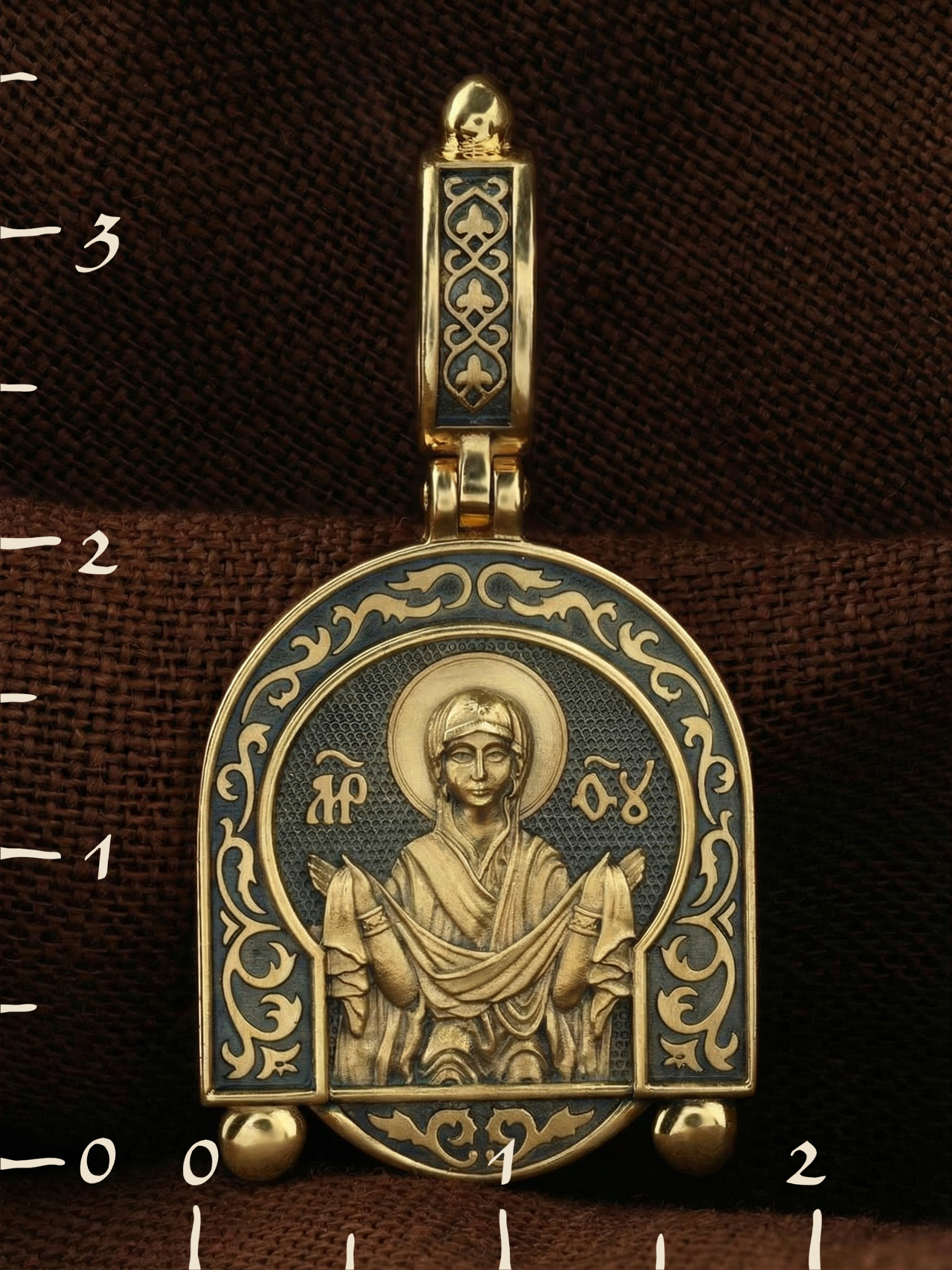 На обороте образка написано: «Владычице, покрый нас Честным Твоим покровом и избави нас от всякия зла».