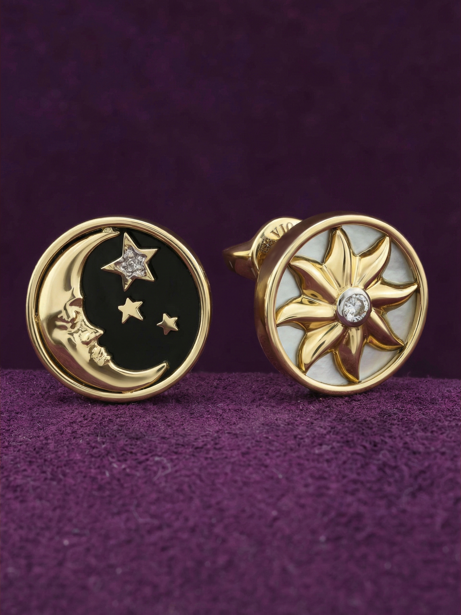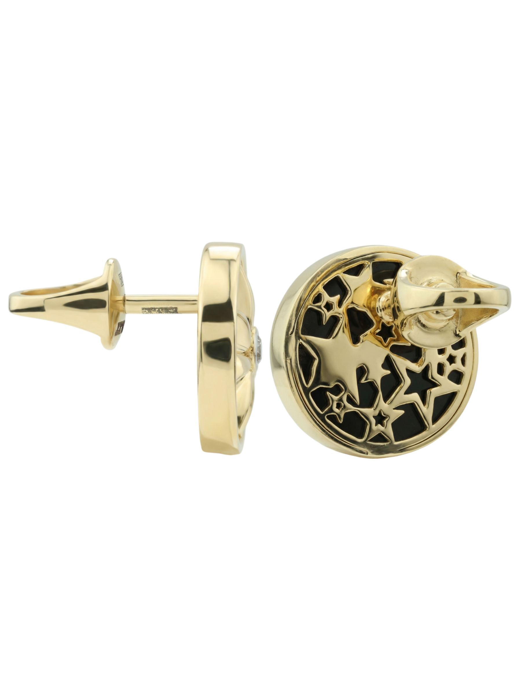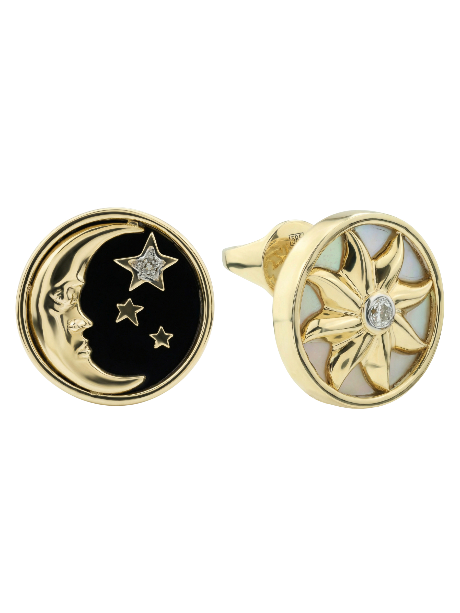 Серьги из лимонного золота c бриллиантами, ониксом и перламутром