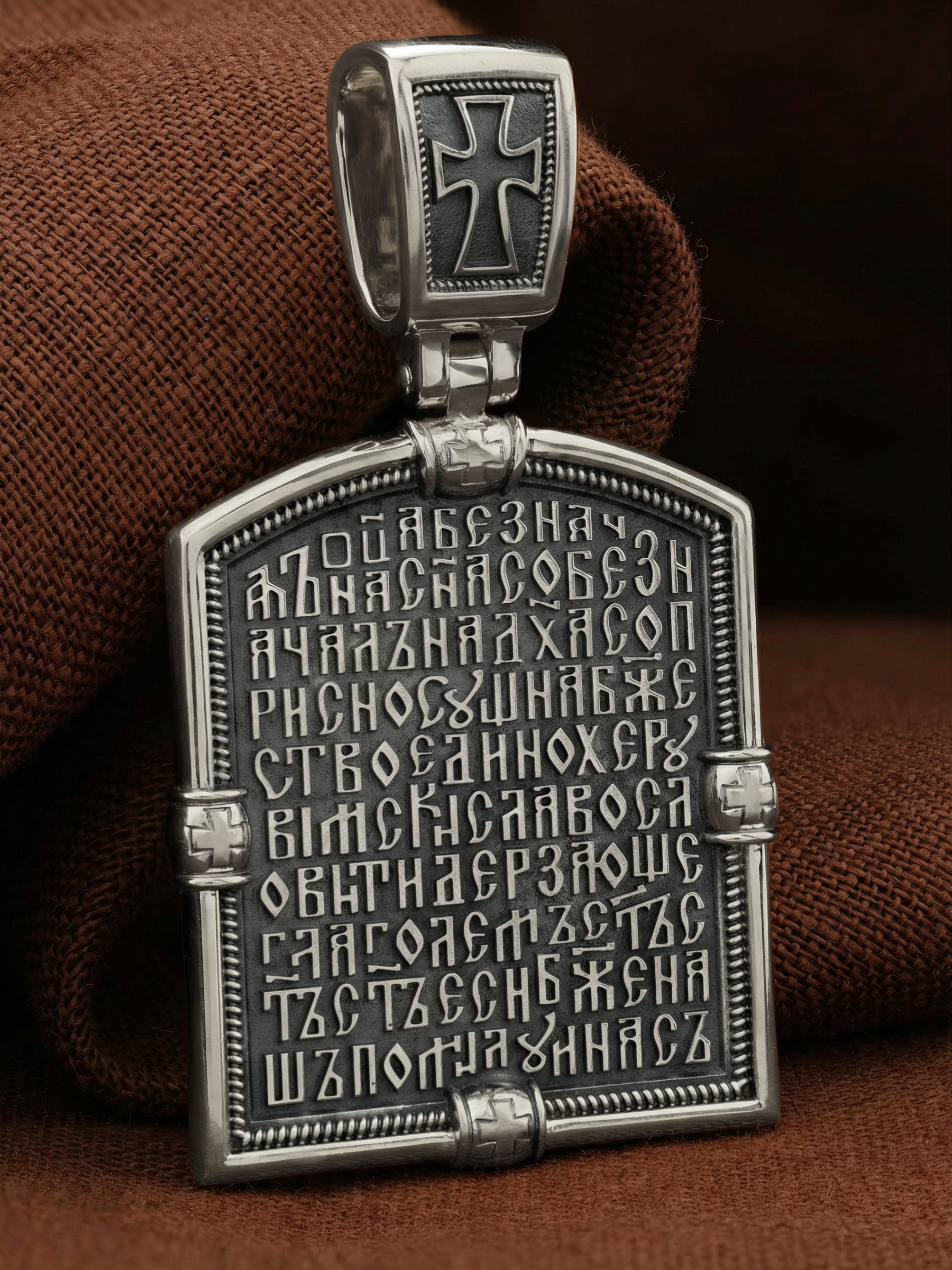 На обороте образка написана молитва: «Отца безначальна, Сына собезначальна, Духа соприносущна, Божество едино, херувимски славословити дерзающе глаголем: свят, свят, свят еси Боже наш, помилуй нас.»