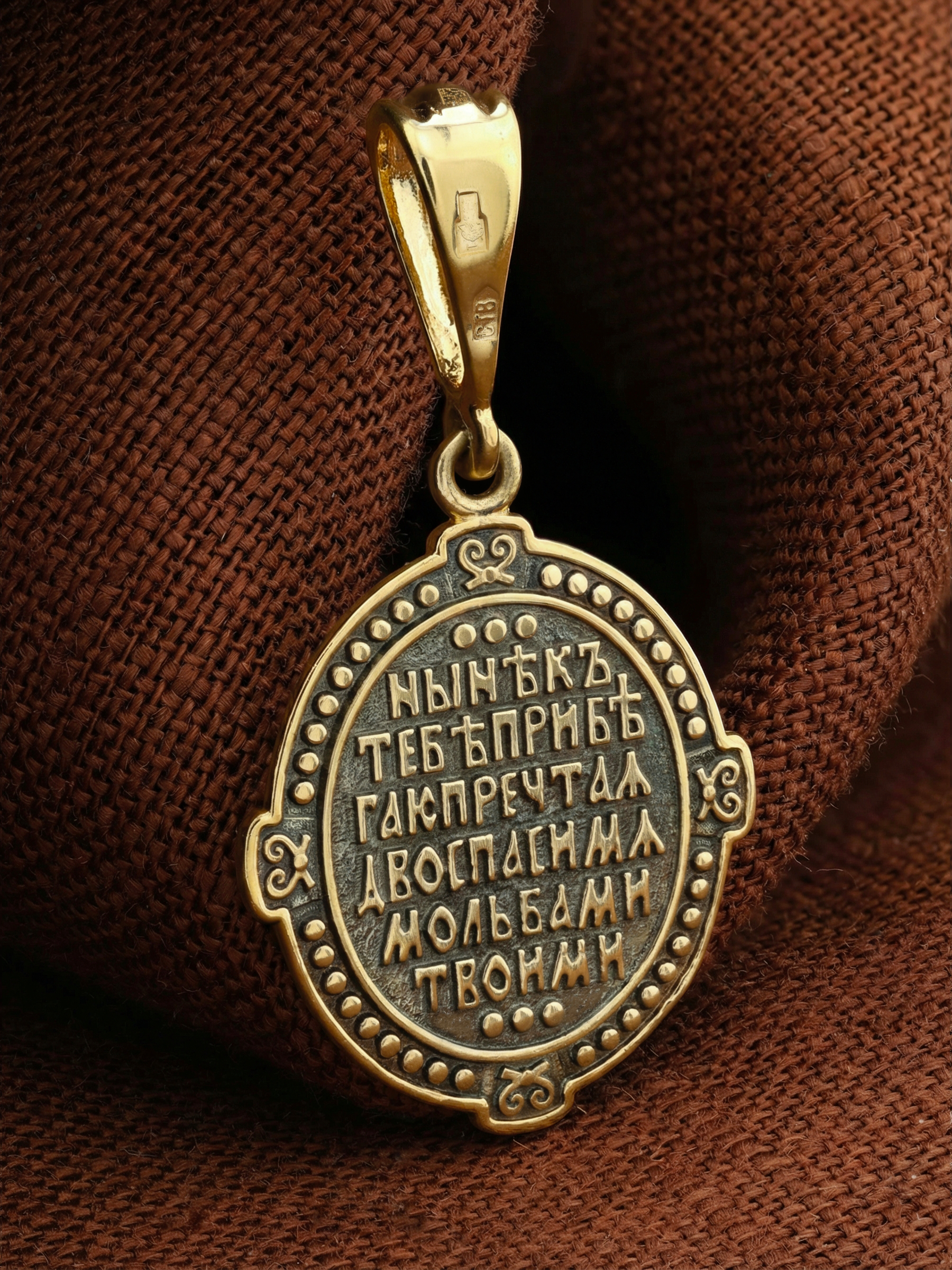На обороте образка написана молитва Богородице: «Ныне к Тебе прибегаю, Пречистая Дево, спаси мя молитвами Твоими».