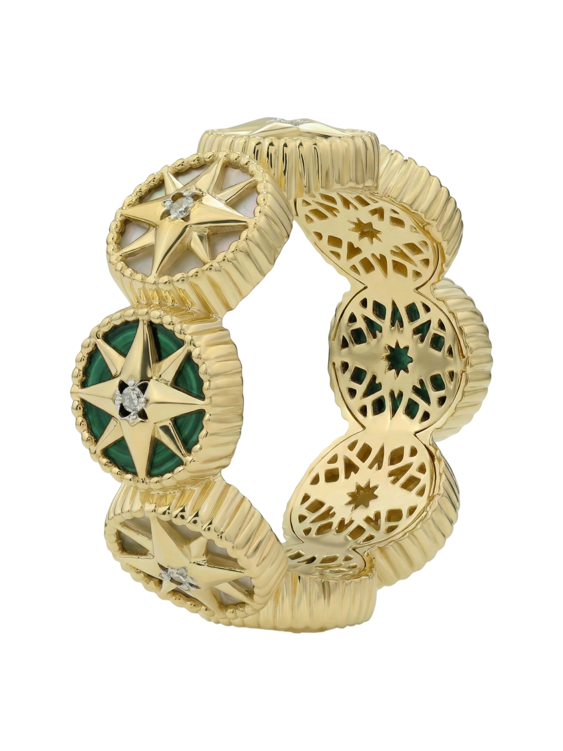 Кольцо из лимонного золота c бриллиантами, малахитом и перламутром