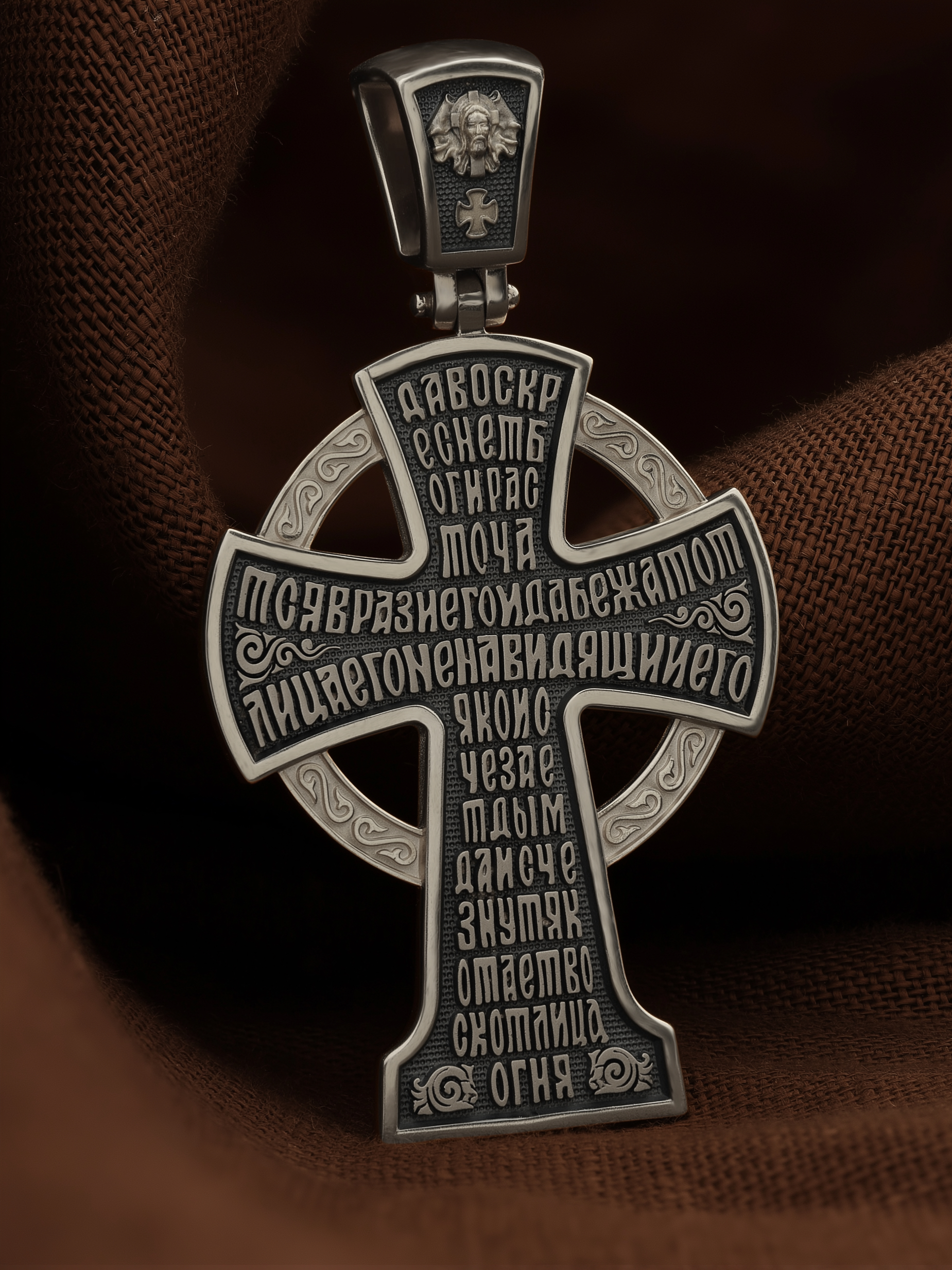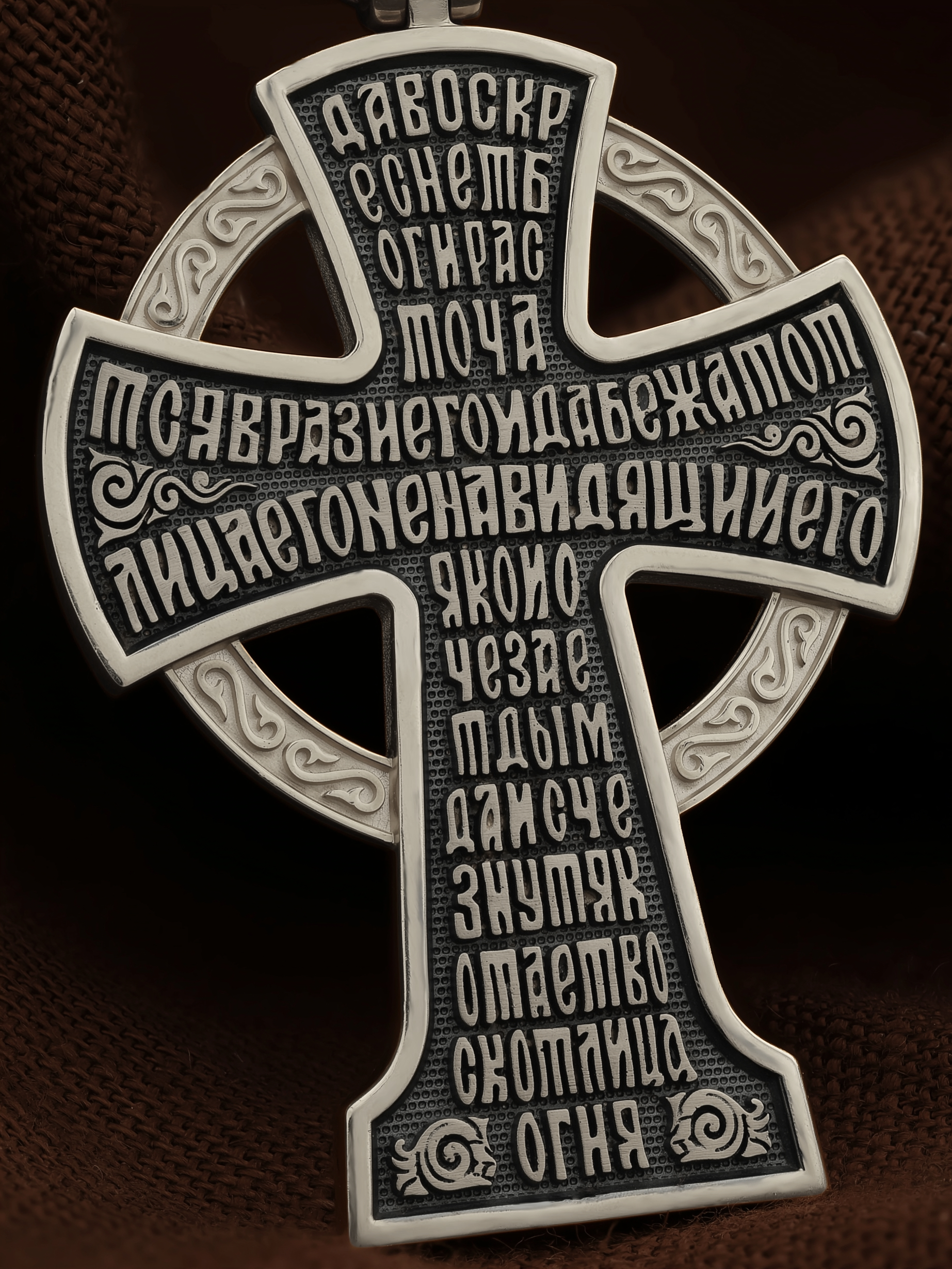 На обороте написан начальный стих оградительной молитвы Честному Кресту Господню: «Да воскреснет Бог, и расточатся врази Его, и да бежат от лица Его ненавидящии Его. Яко исчезает дым, да исчезнут; яко тает воск от лица огня, тако да погибнут беси от лица любящих Бога и знаменующихся крестным знамением, и в веселии глаголющих: радуйся, Пречестный и Животворящий Кресте Господень, прогоняй бесы силою на тебе пропятаго Господа нашего Иисуса Христа, во ад сшедшаго и поправшаго силу диаволю, и даровавшаго нам тебе Крест Свой Честный на прогнание всякаго супостата. О, Пречестный и Животворящий Кресте Господень! Помогай ми со Святою Госпожею Девою Богородицею и со всеми святыми во веки. Аминь».