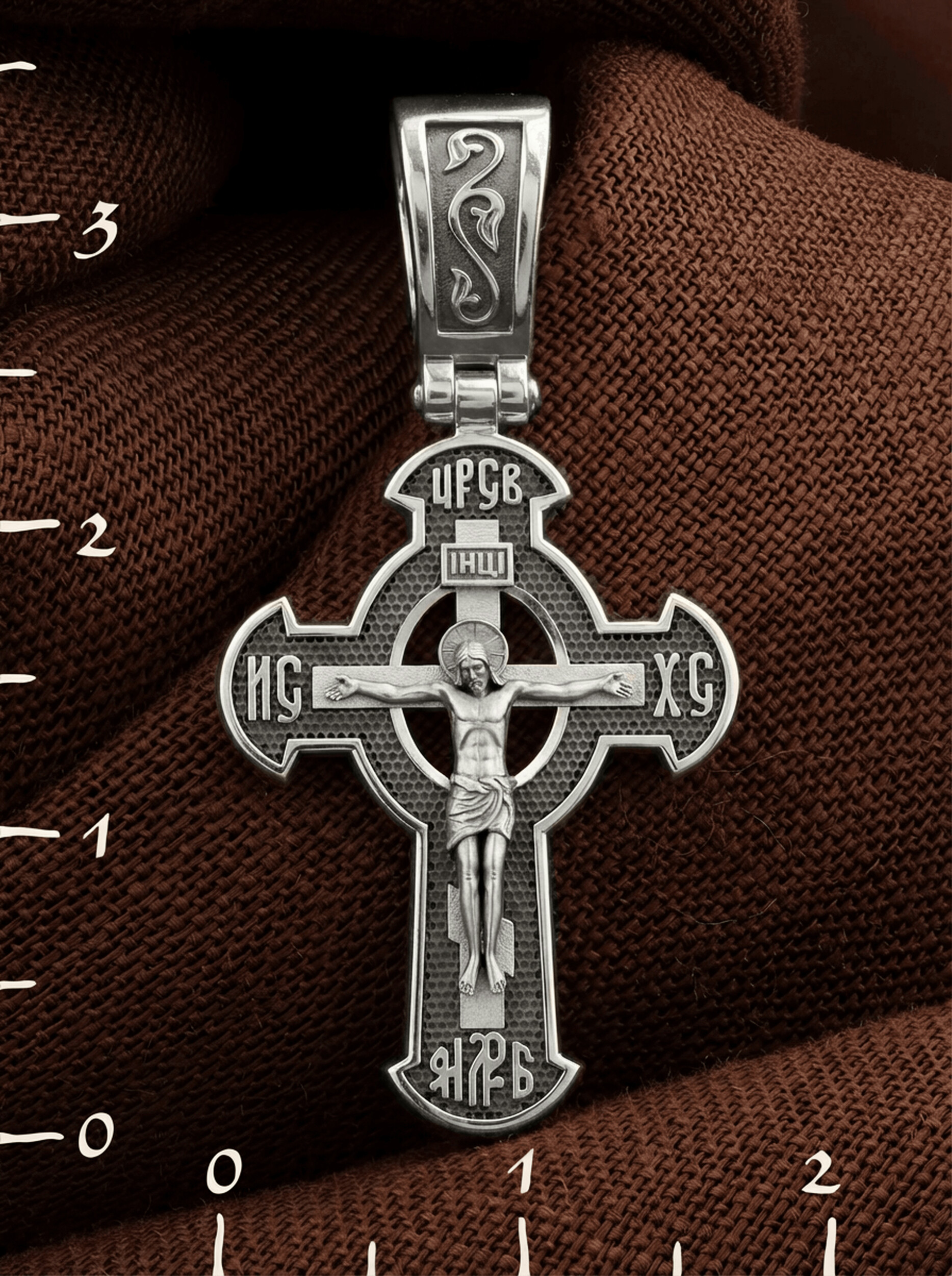 Оборотная сторона креста украшена растительным орнаментом. Помещенный на крест орнамент символизирует жизнедательную силу, животворное тепло креста. В растительный узор, на горизонтальной перекладине, вписано молитвенное славословие: «Спаси и сохрани». Эта надпись означает непрерывную молитву, совершаемую носителем данного креста.