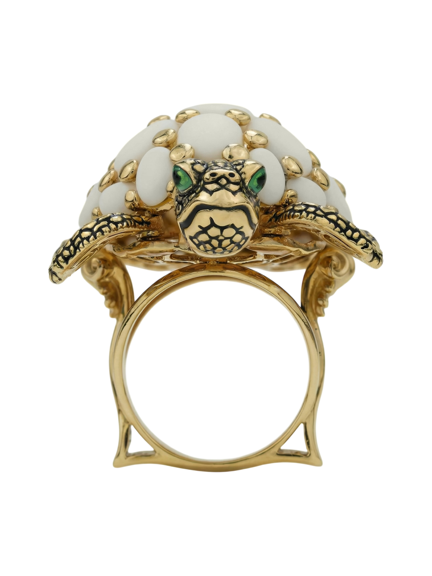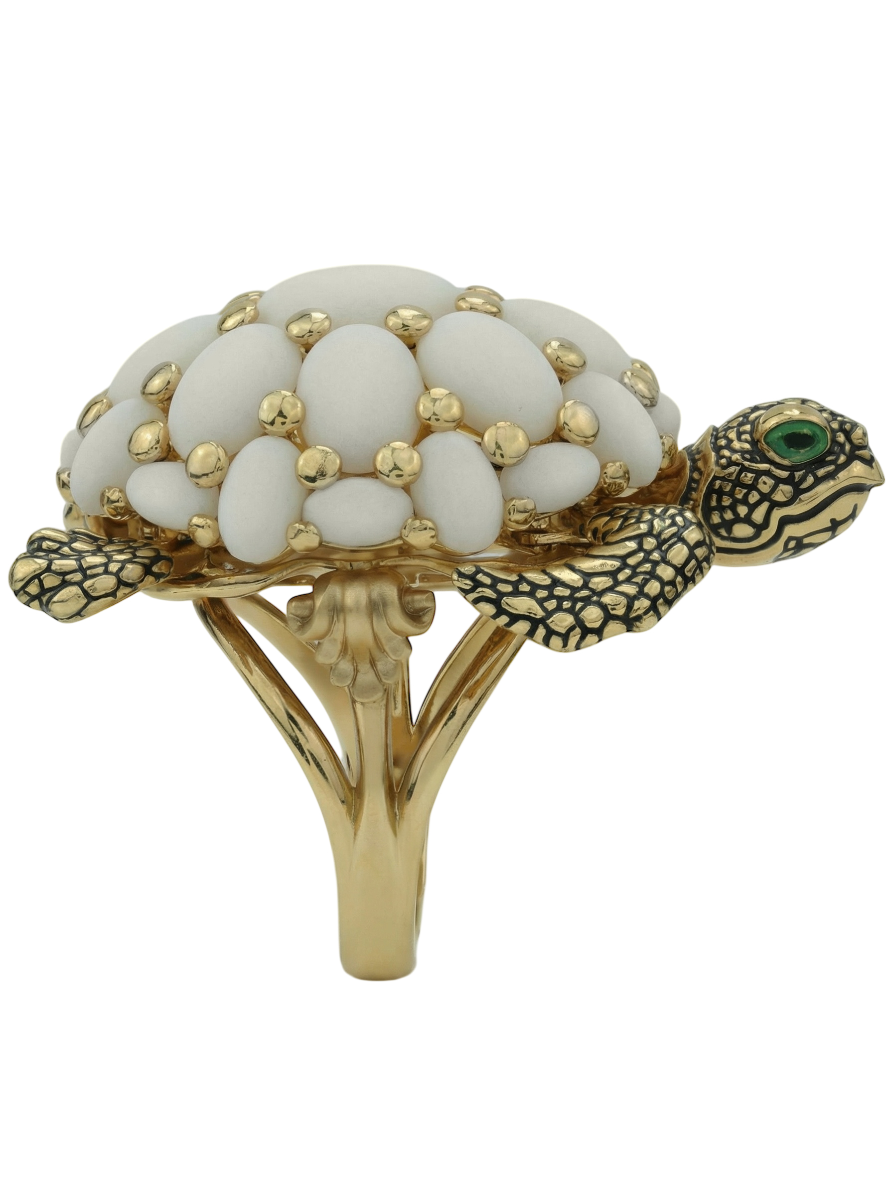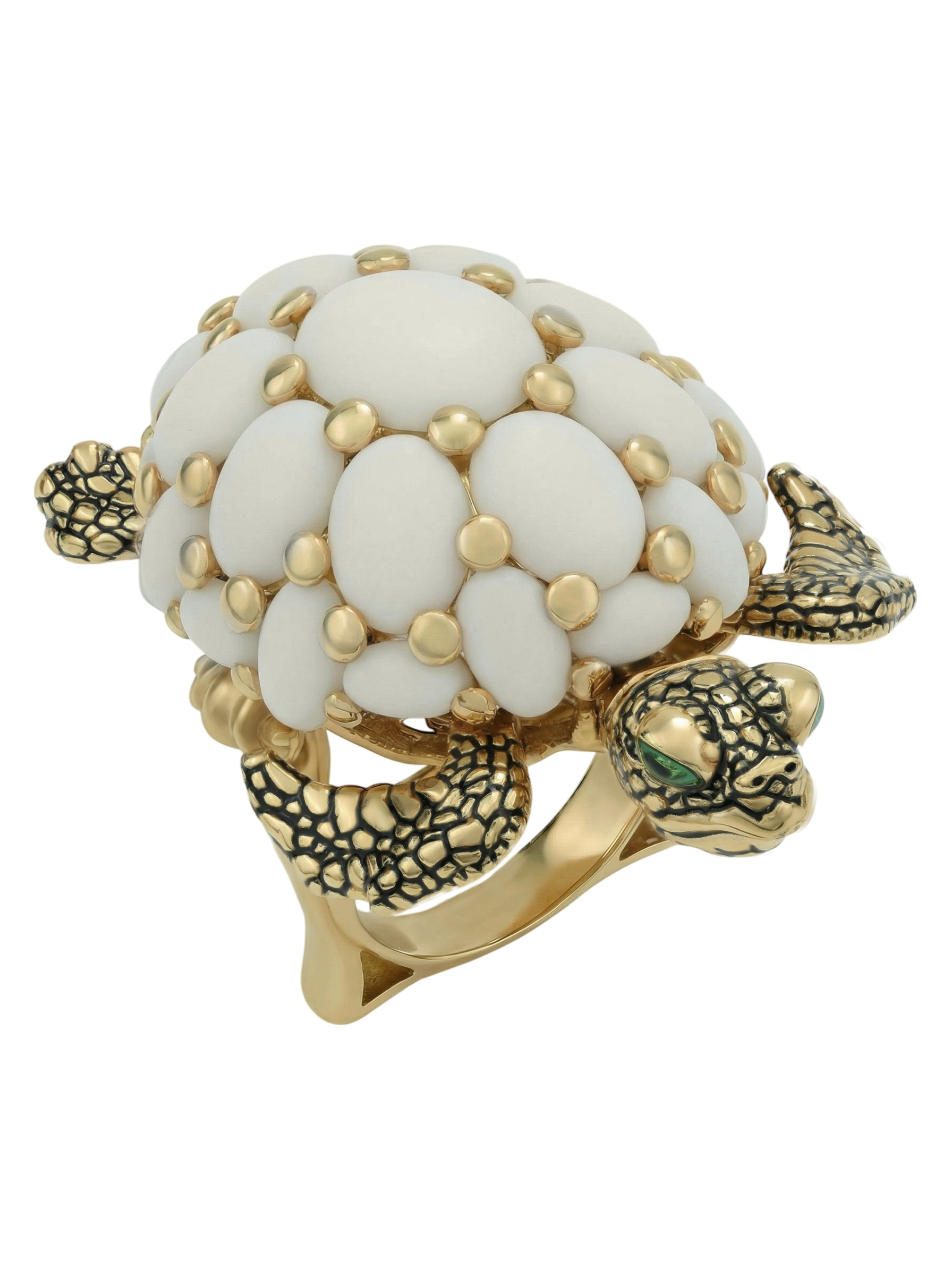 Кольцо из лимонного золота c эмалью и бивнем мамонта