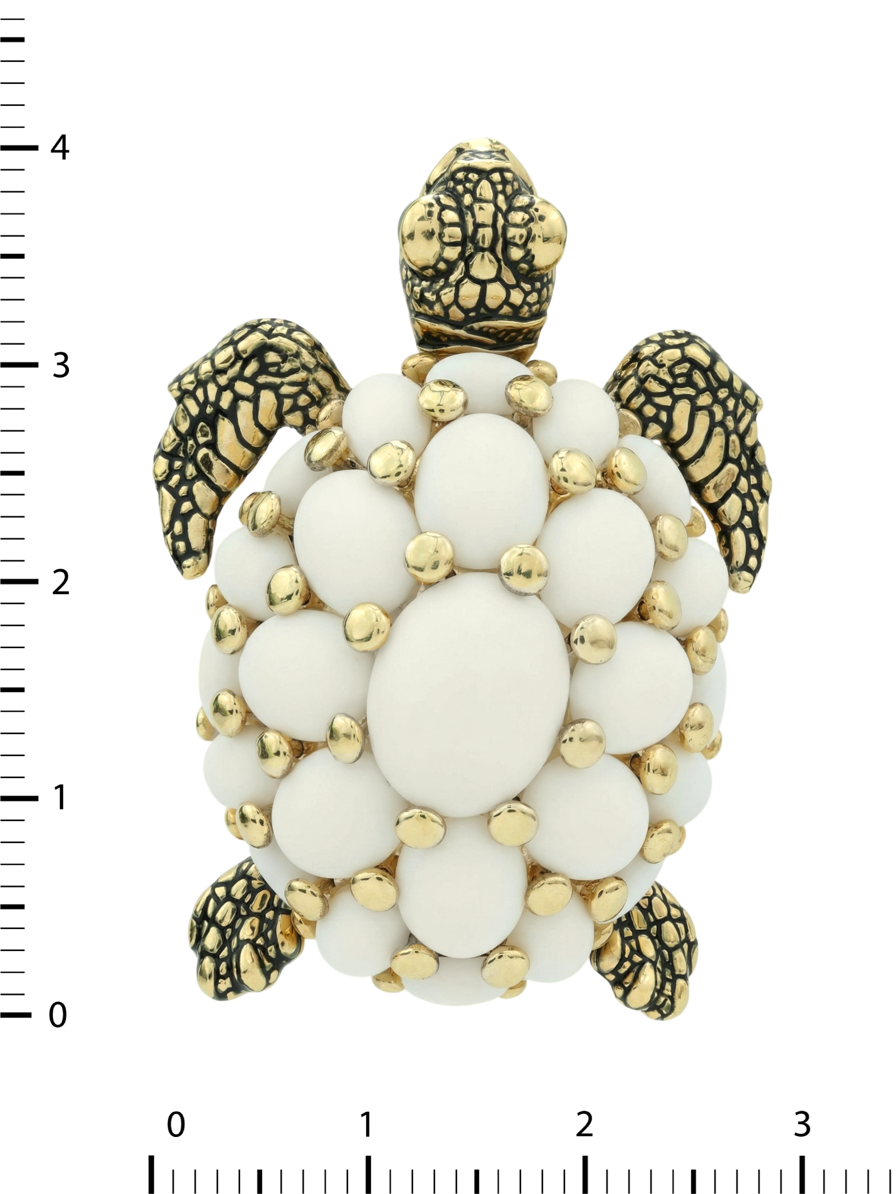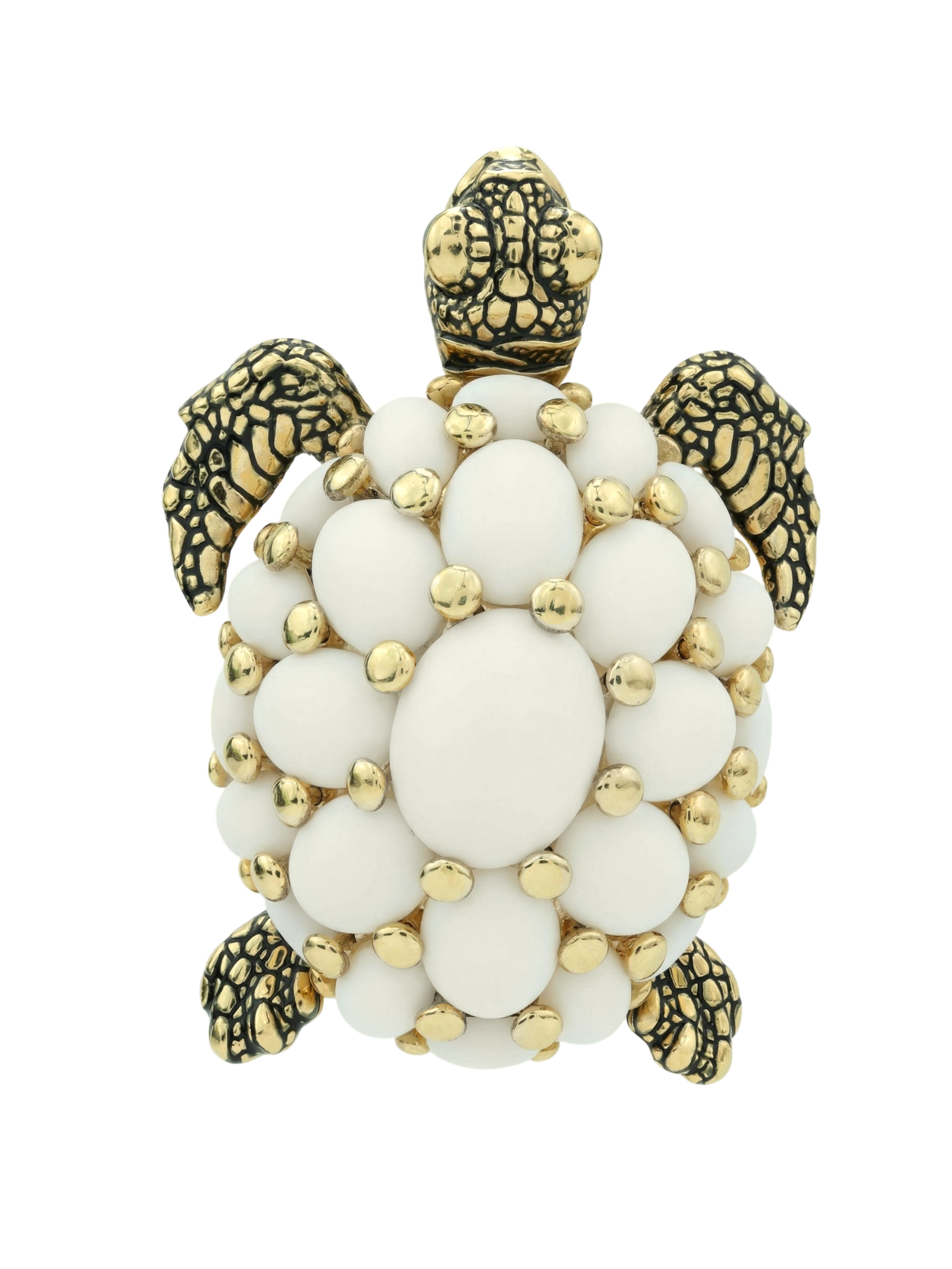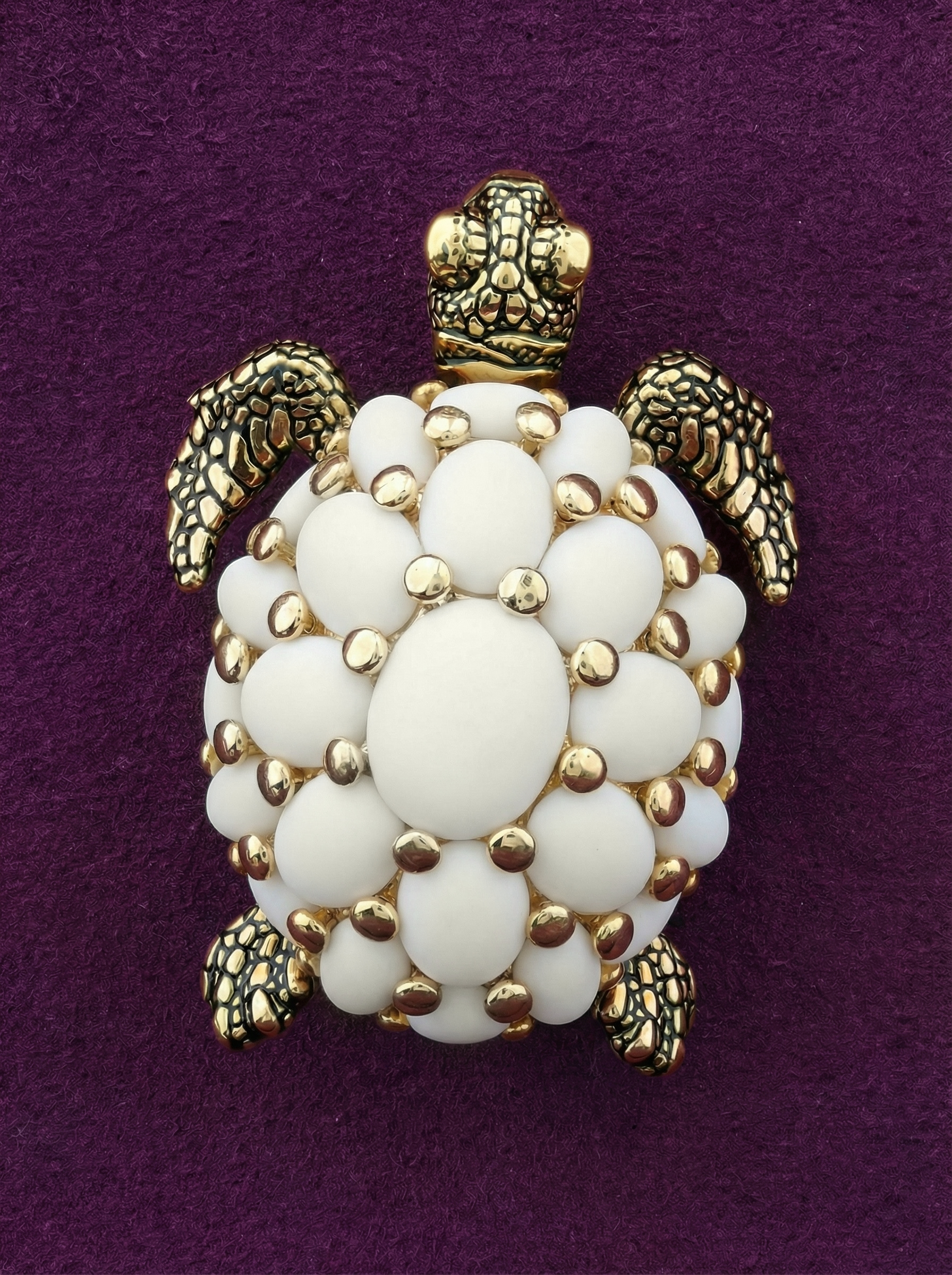 Брошь из лимонного золота c эмалью и бивнем мамонта