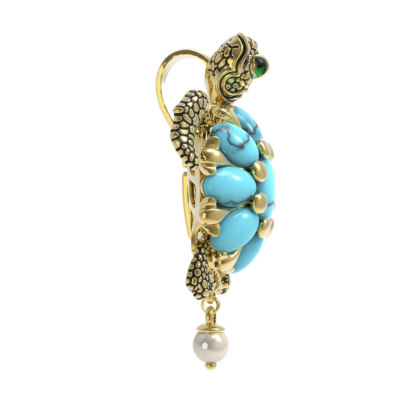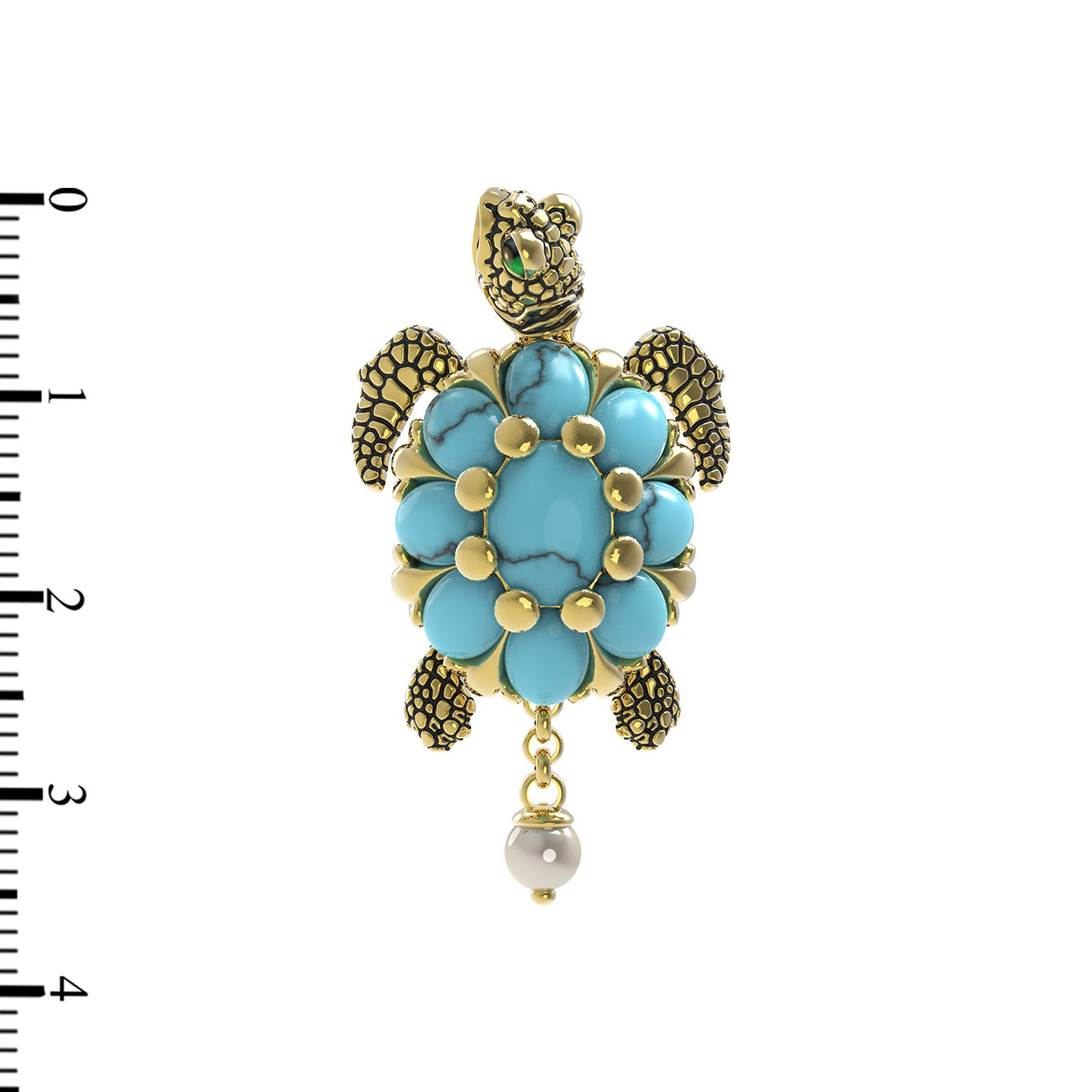 Подвеска из лимонного золота c эмаль, жемчугом и бирюзой