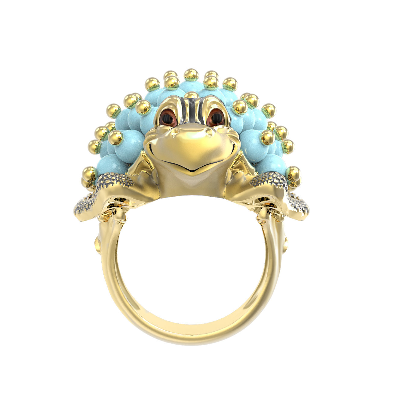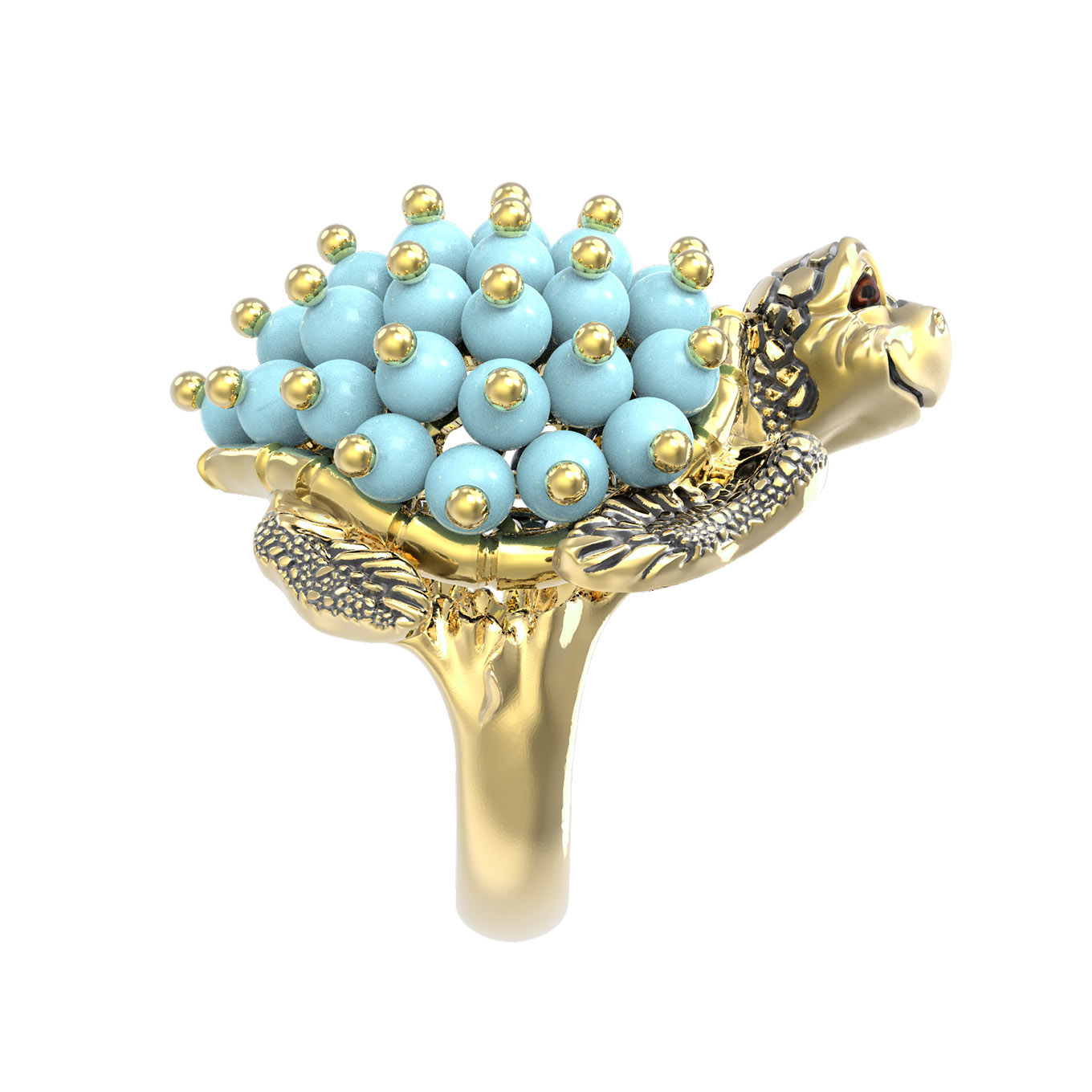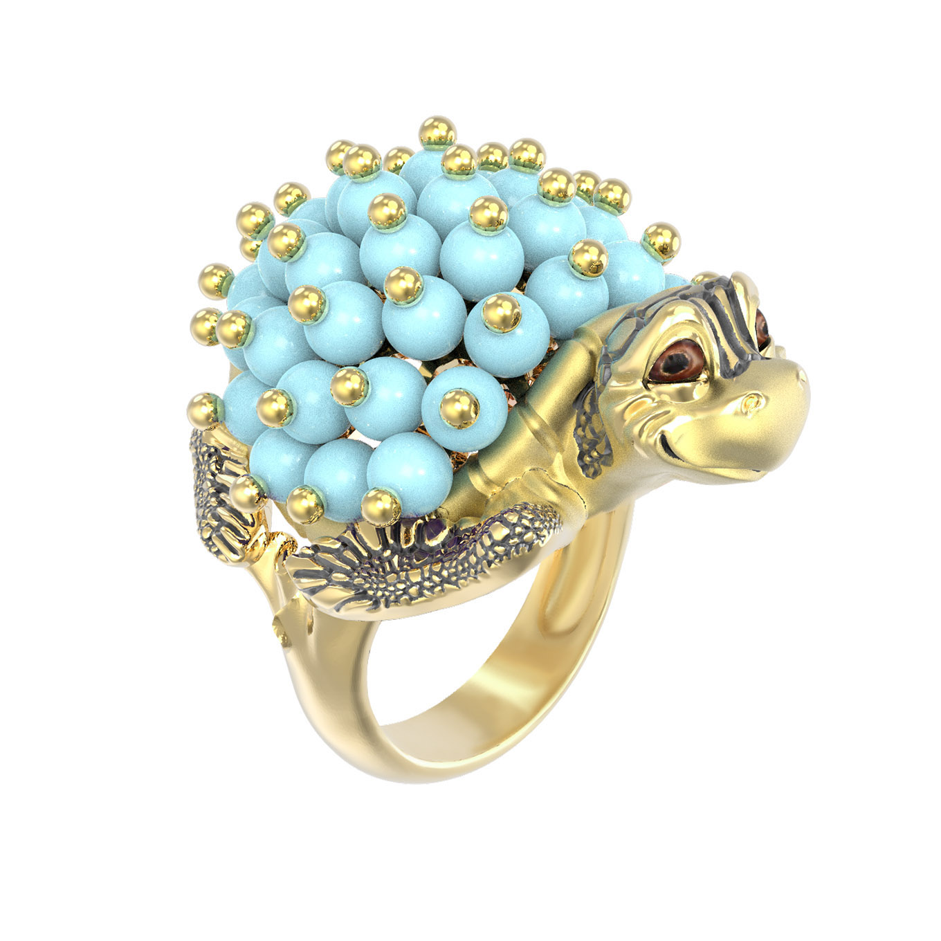Кольцо из лимонного золота c эмалью и бирюзой
