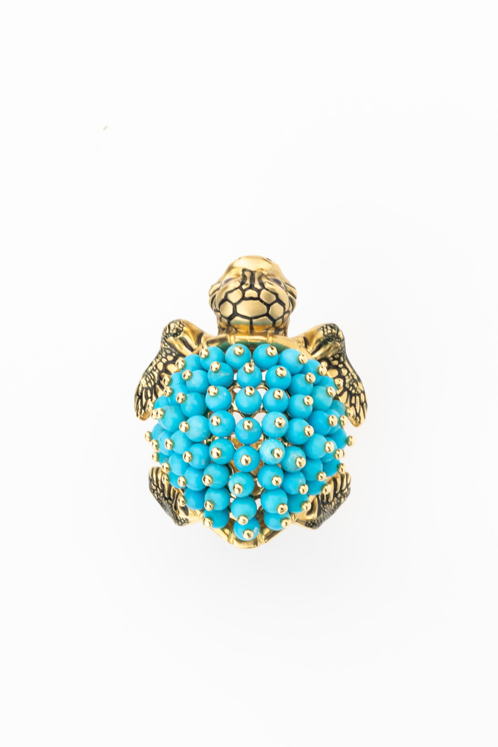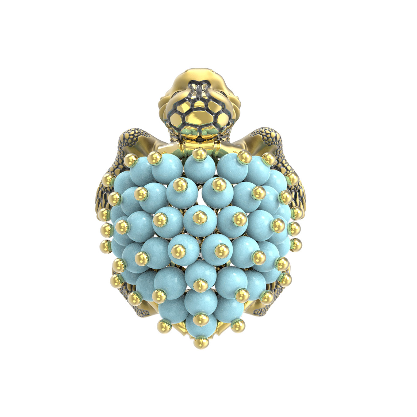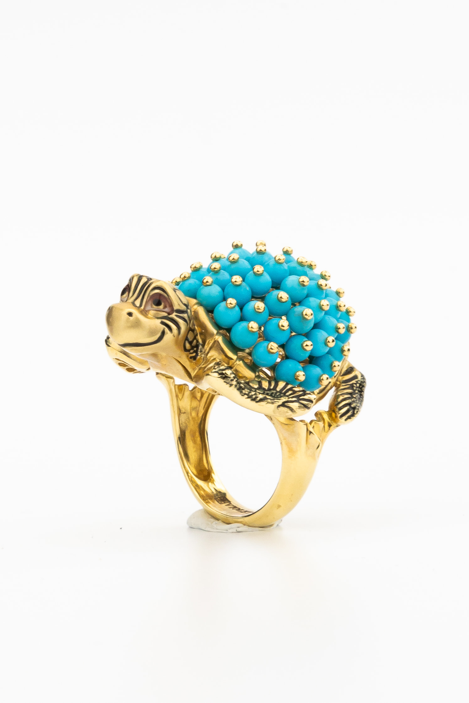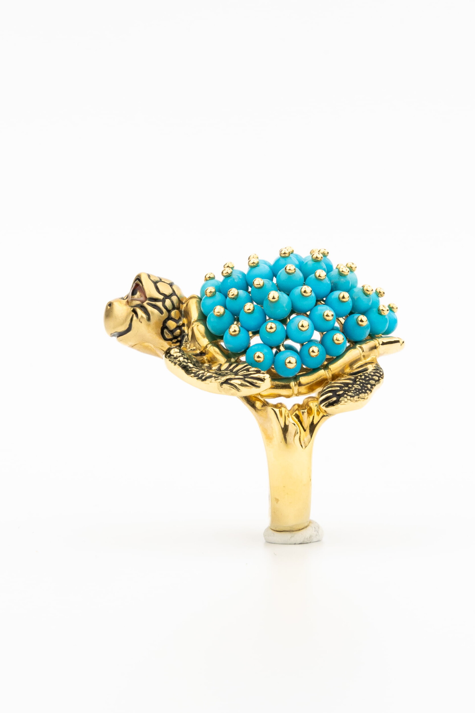 Кольцо из лимонного золота c эмалью и бирюзой
