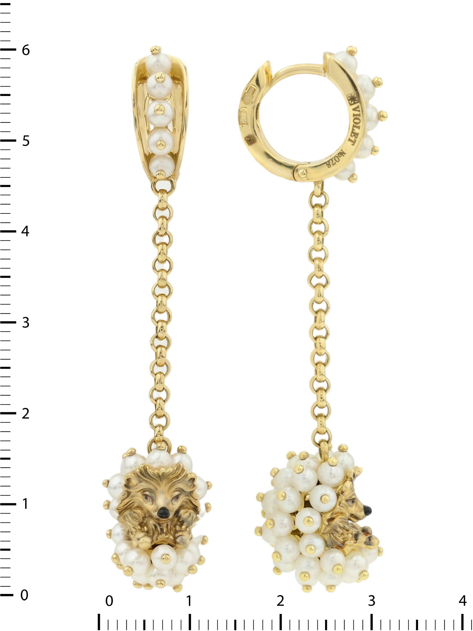 Серьги из лимонного золота c эмаль и жемчугом