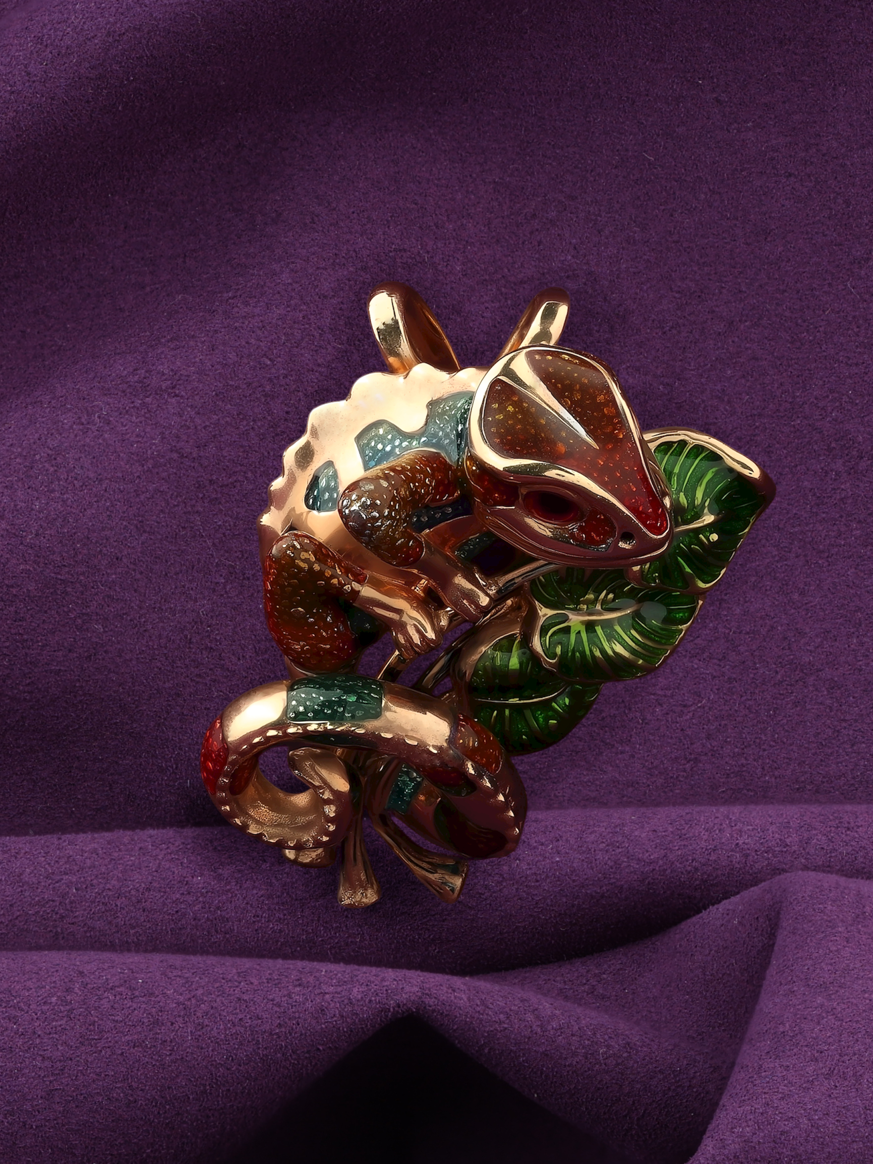 Подвеска из золота c эмаль и гранатом