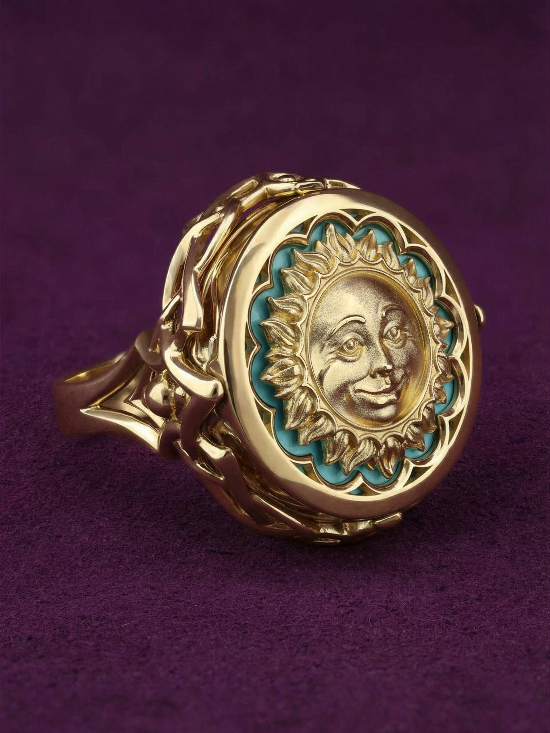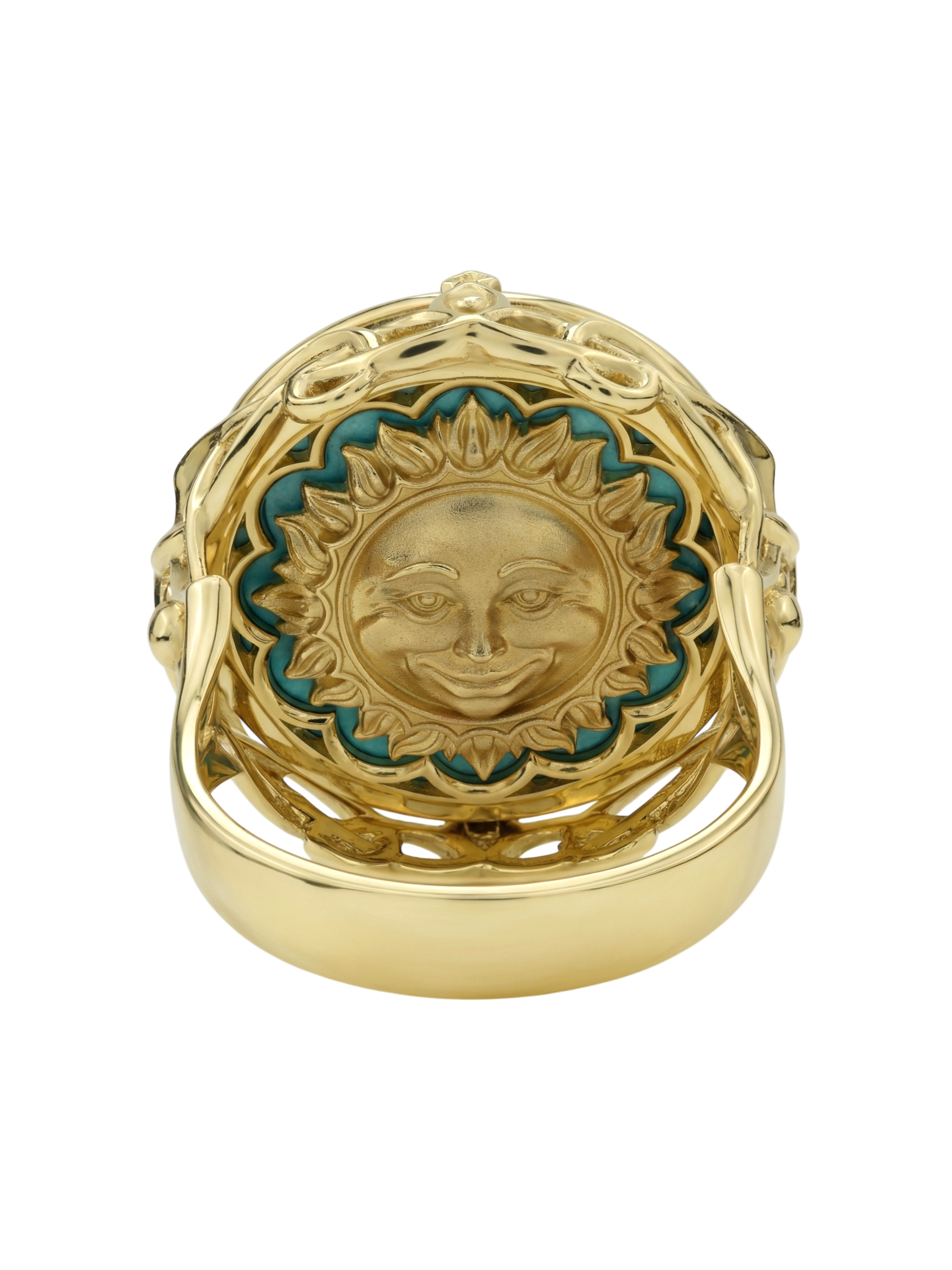Кольцо из лимонного золота c бирюзой и лазуритом