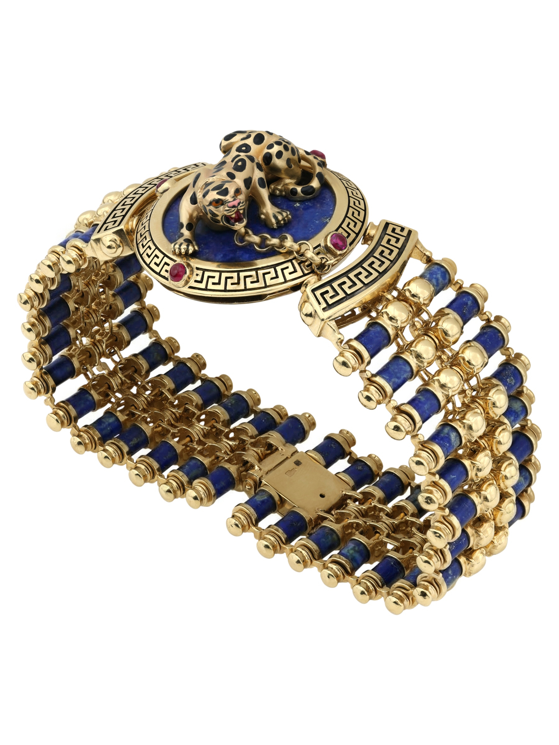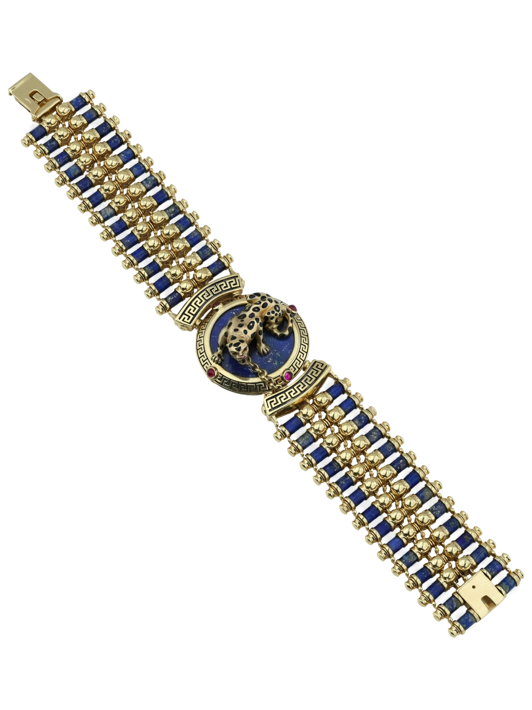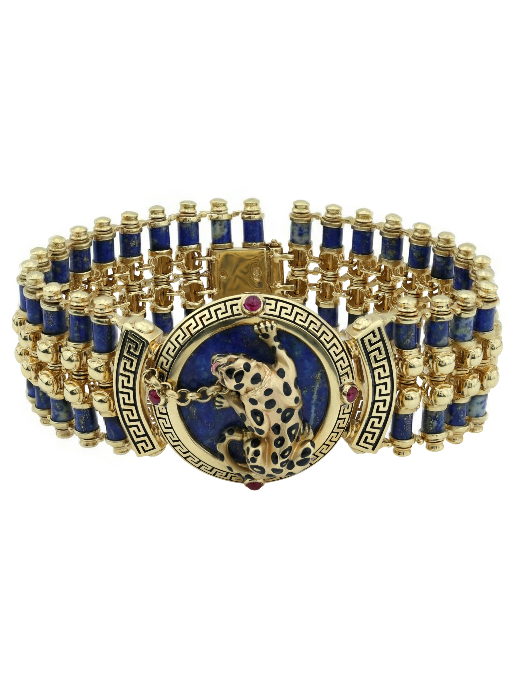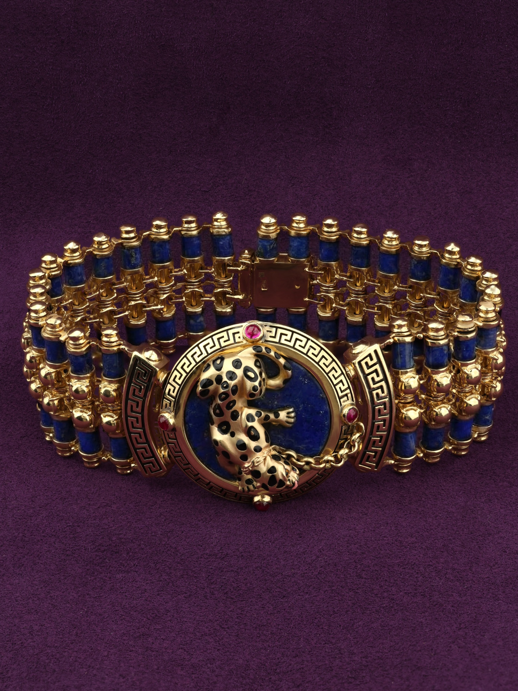 Браслет из лимонного золота c эмаль, рубином и лазуритом