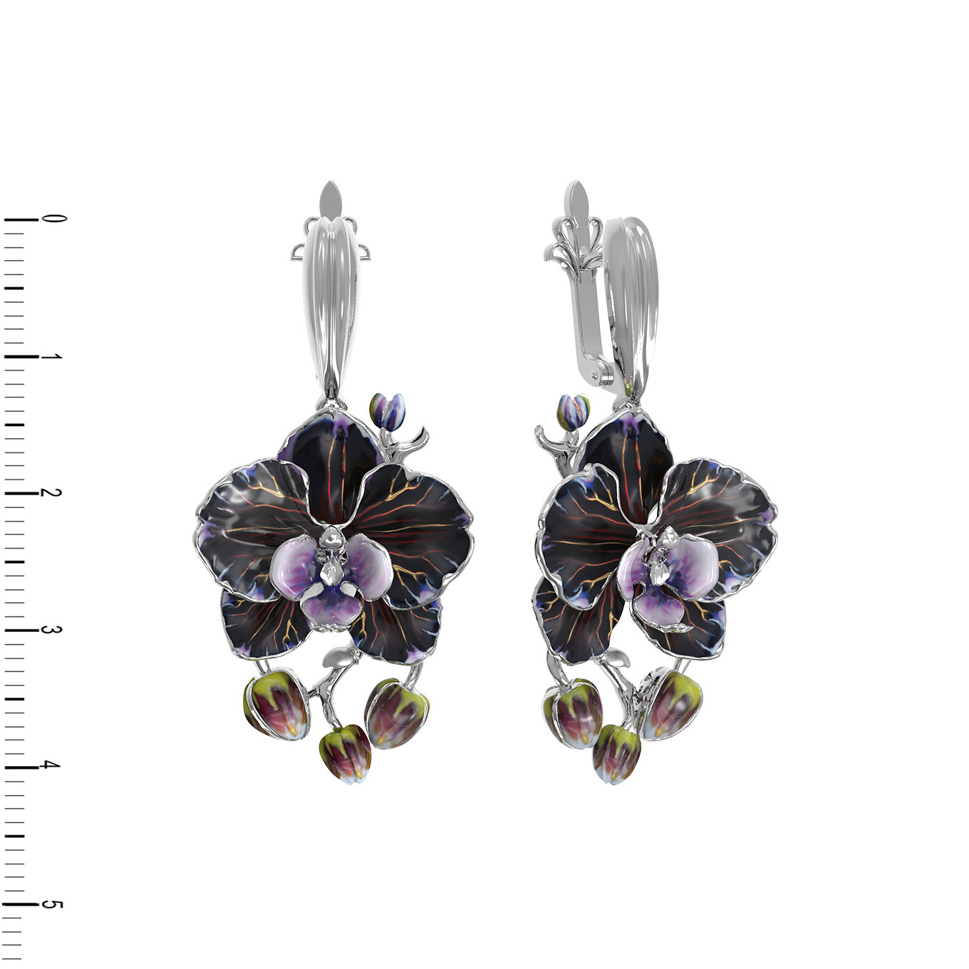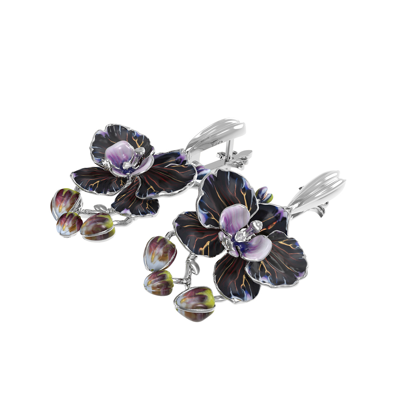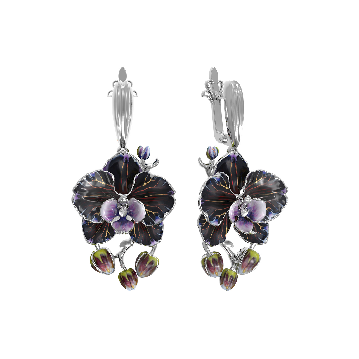 Серьги из белого золота c эмалью