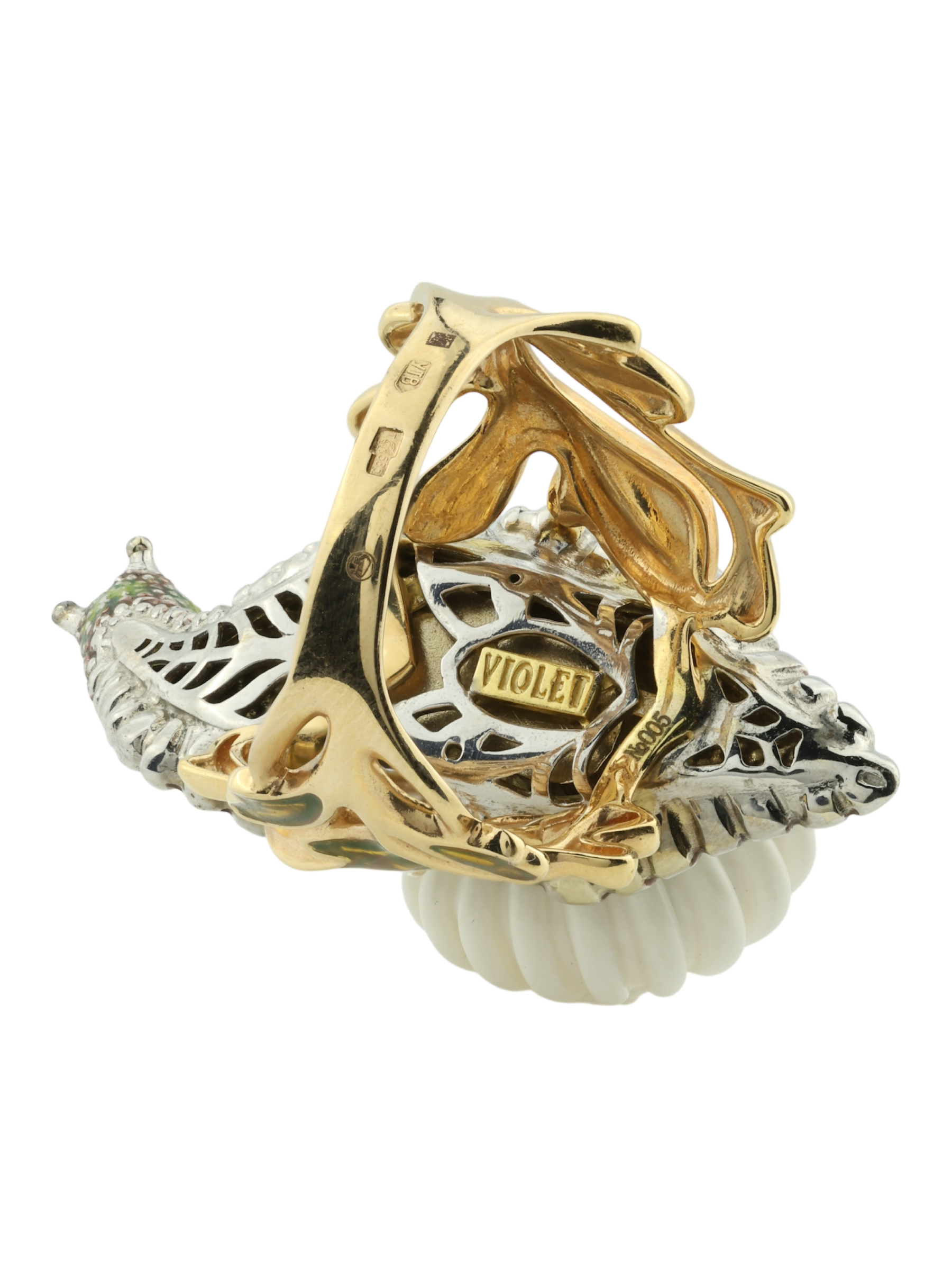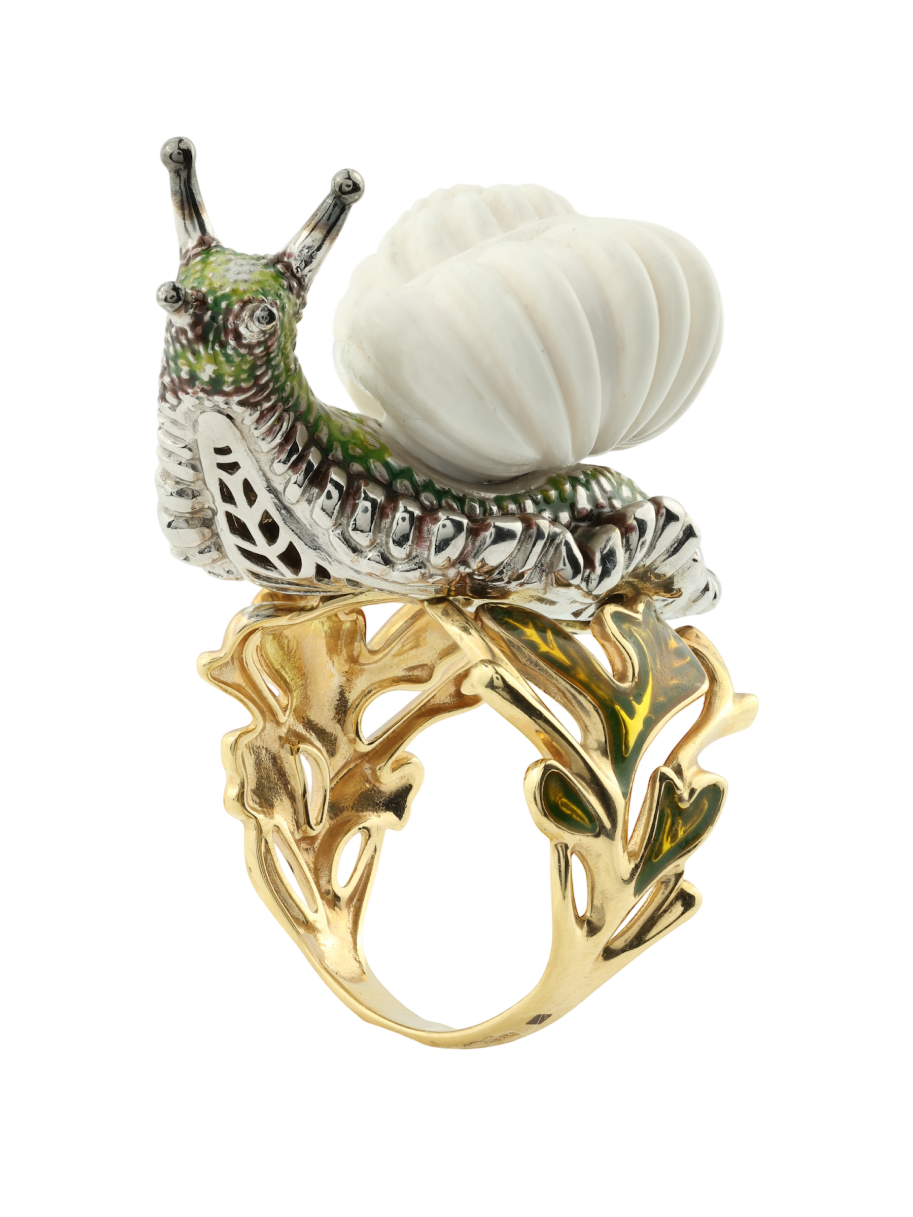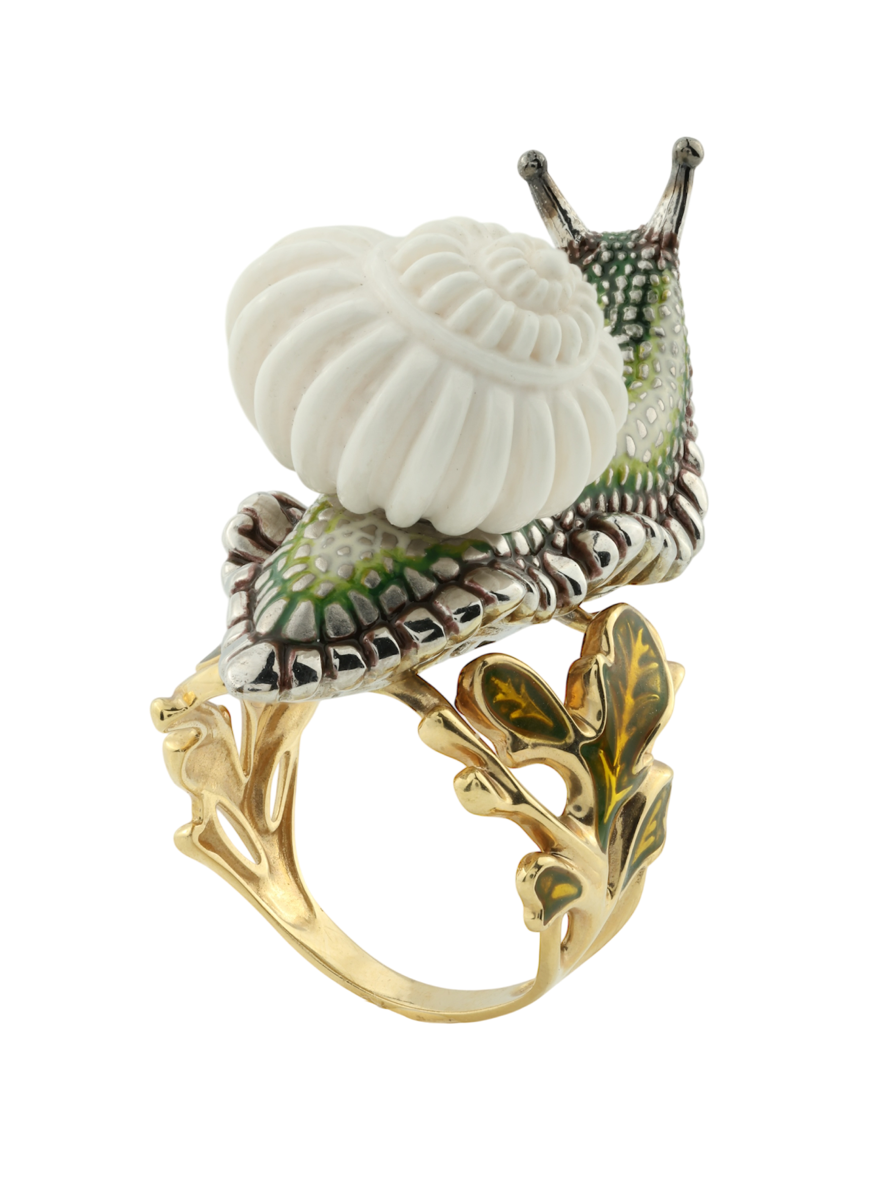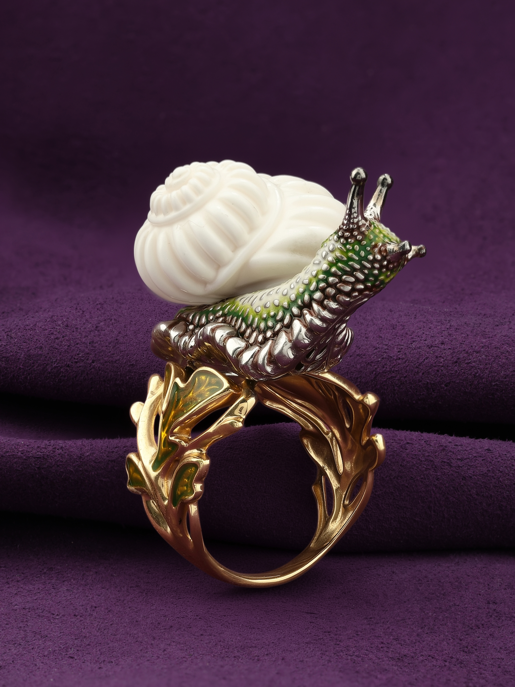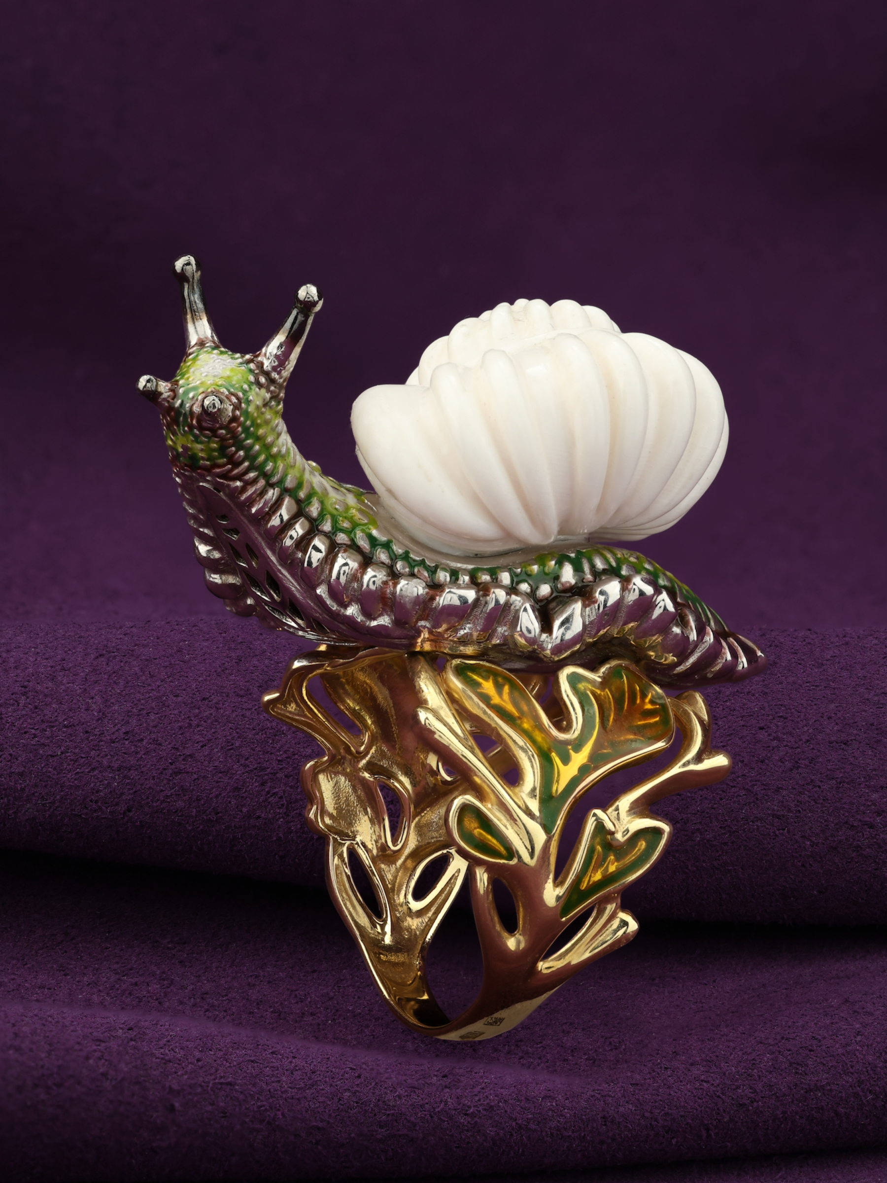 Кольцо из лимонного золота c эмалью и бивнем мамонта