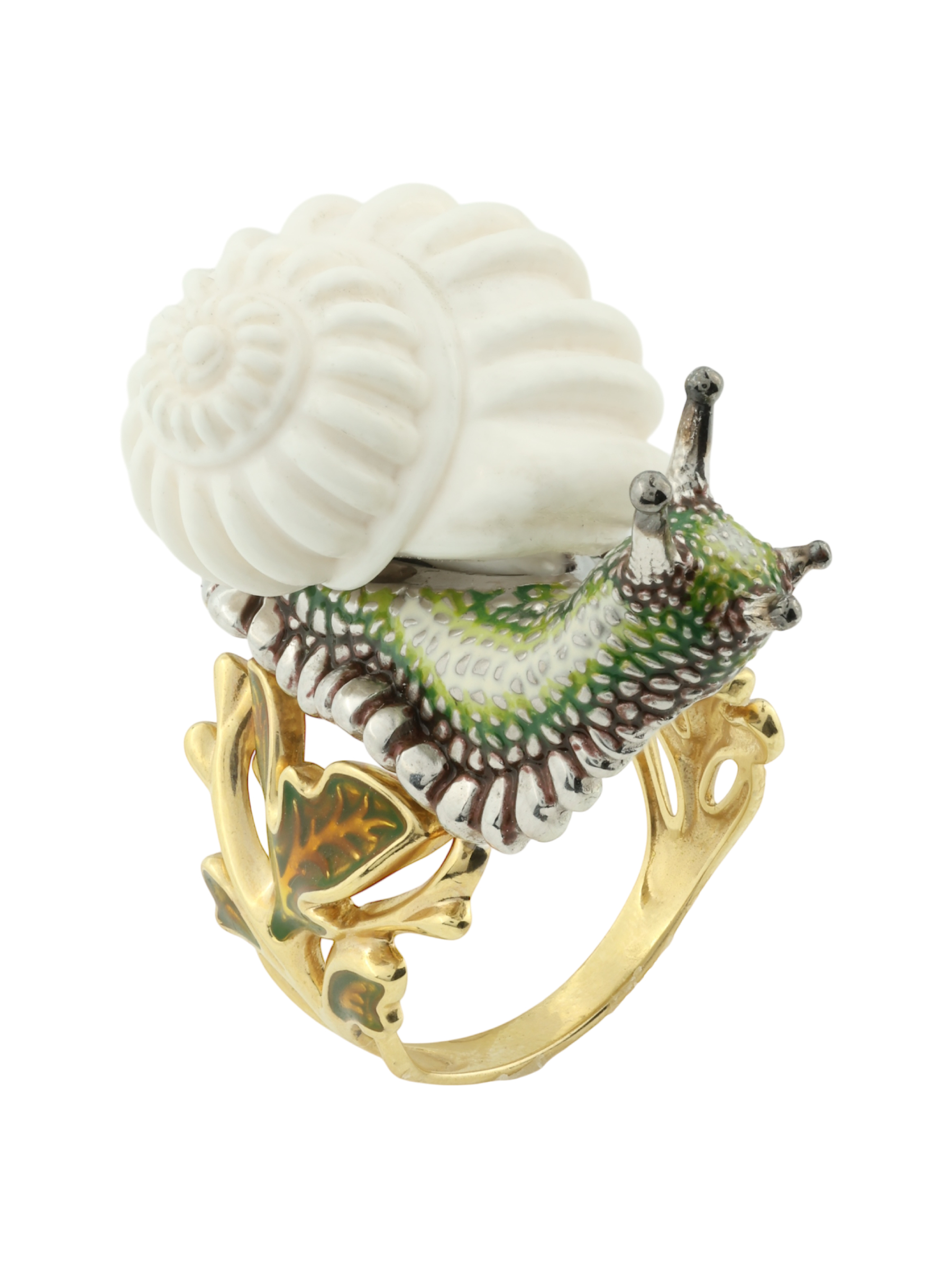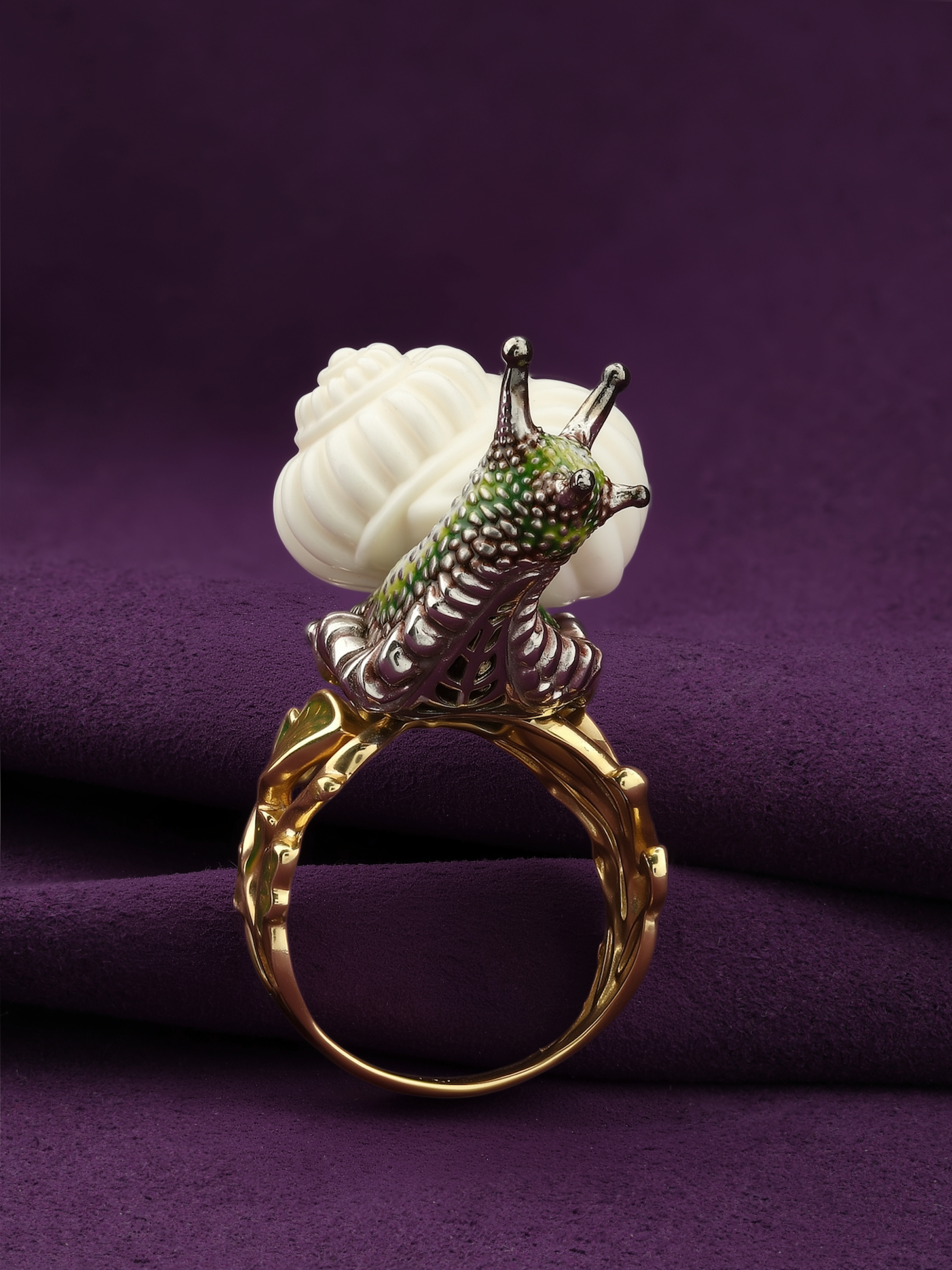 Кольцо из лимонного золота c эмалью и бивнем мамонта