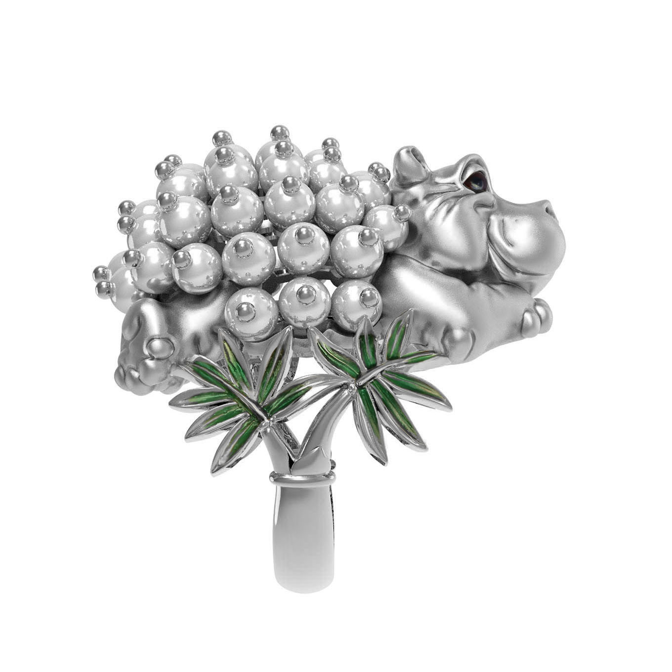 Кольцо из белого золота c эмалью и жемчугом