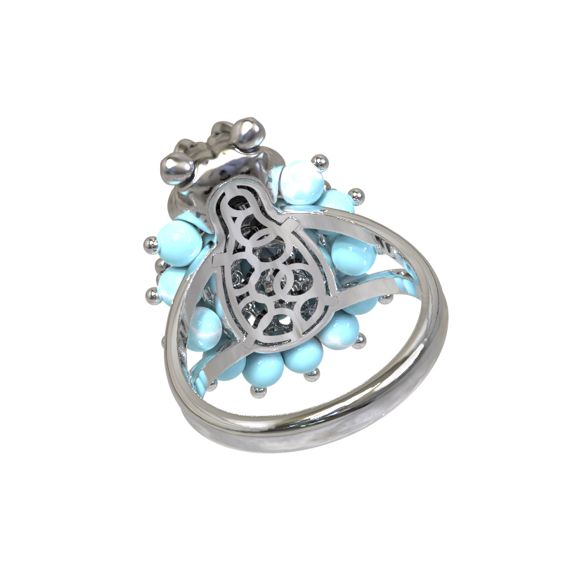 Кольцо из белого золота c эмалью и бирюзой