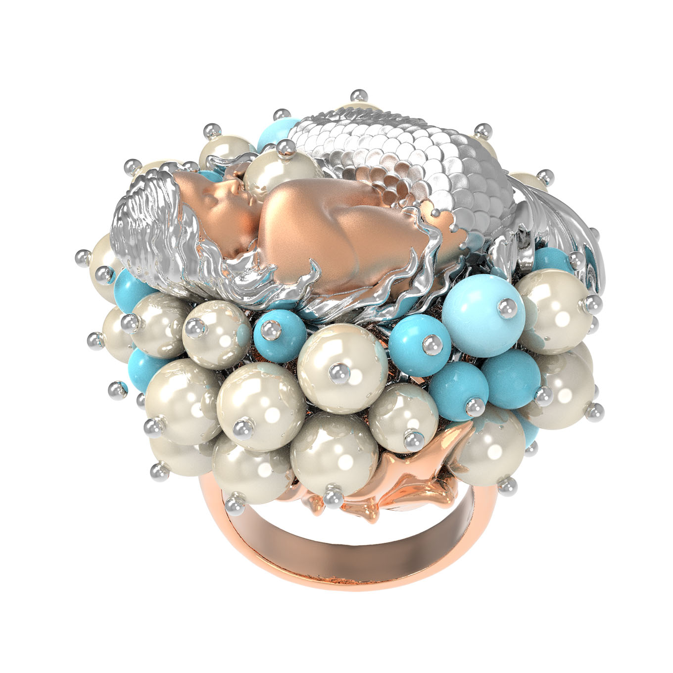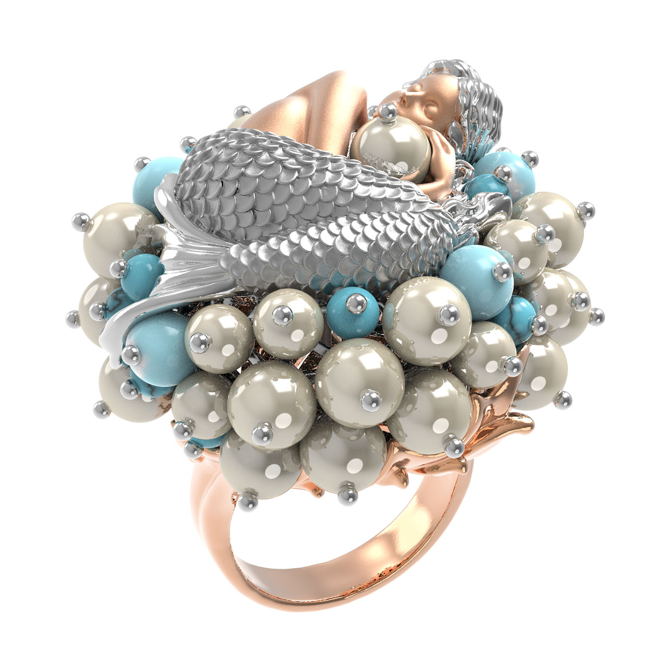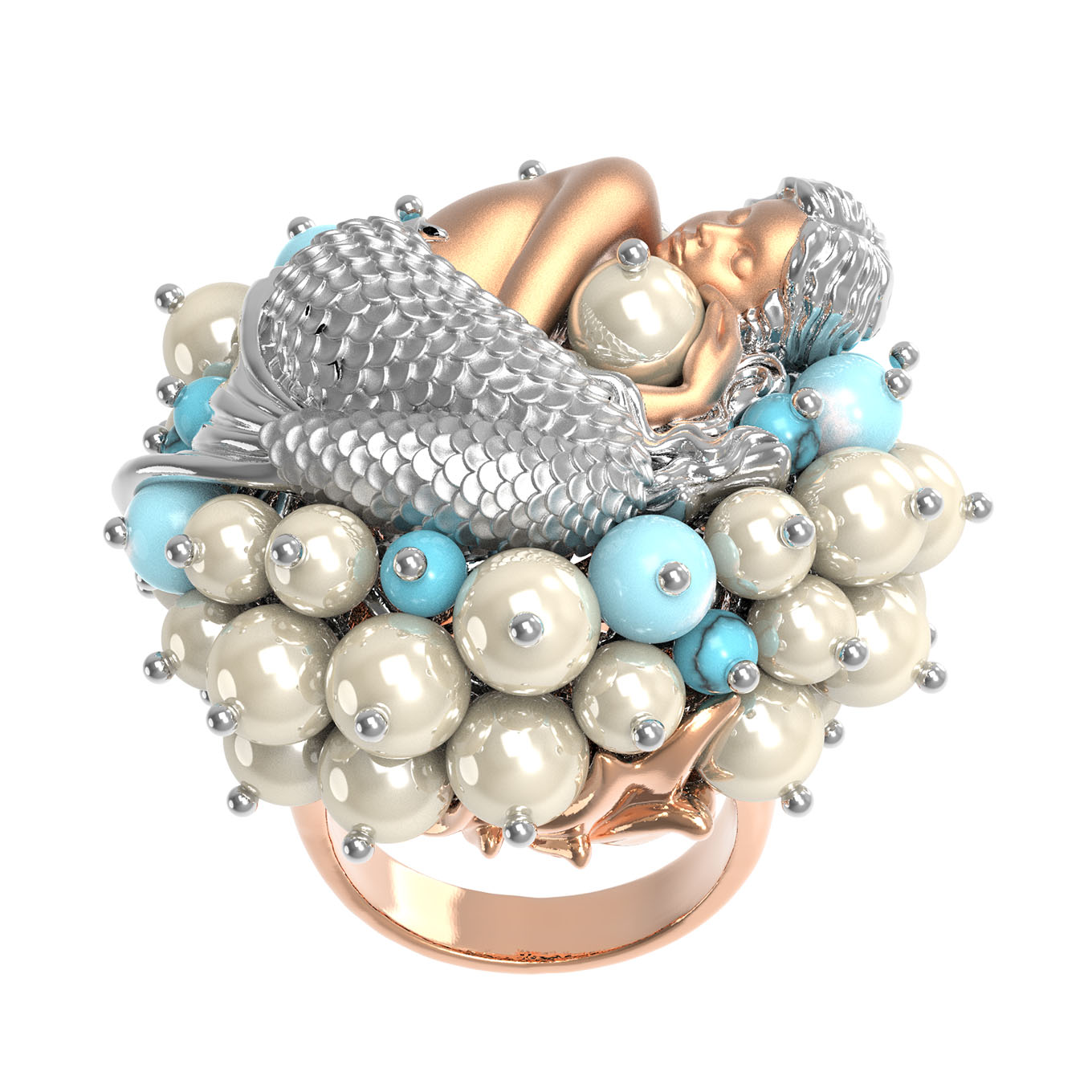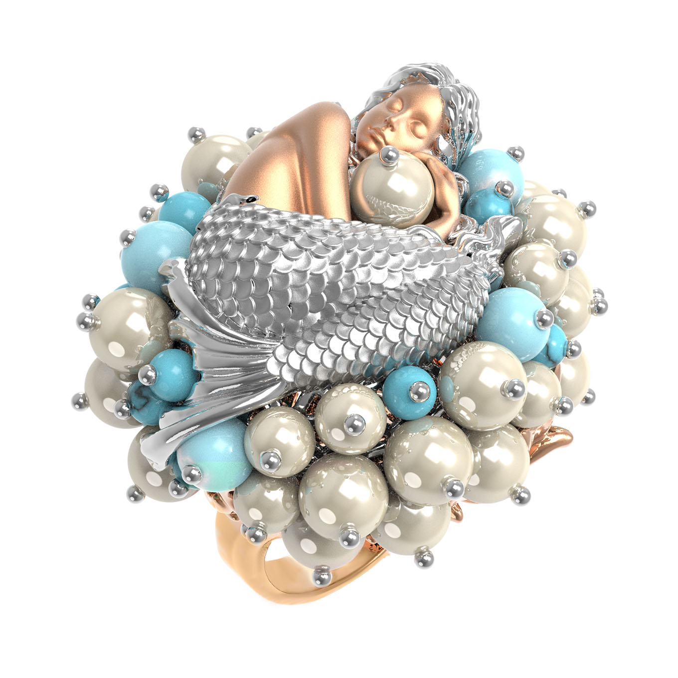 Кольцо из золота c жемчугом и бирюзой