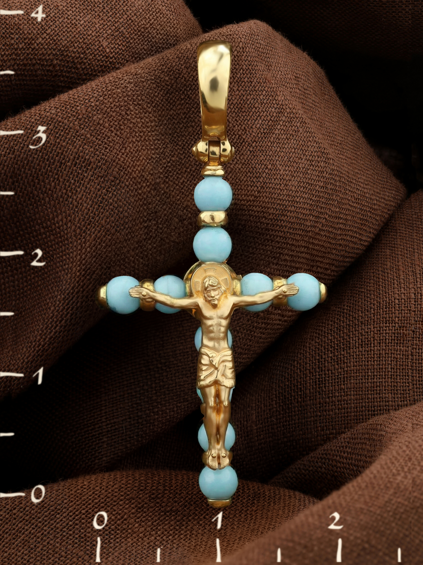 На лицевой стороне креста изображено Распятие Господа и Спасителя нашего Иисуса Христа. Своими крестными страданиями Господь смыл наши грехи, покрыл наш долг перед Богом или, на языке Писания, нас «искупил». В Голгофе сокрыта непостижимая тайна бесконечной правды и любви Бога. Крест стал символом победы добра над злом, жизни над смертью, напоминанием бесконечной Божьей любви, предметом радости. Воплотившийся Сын Божий Своею кровью освятил крест и сделал его проводником Своей благодати, источником освящения верующих.