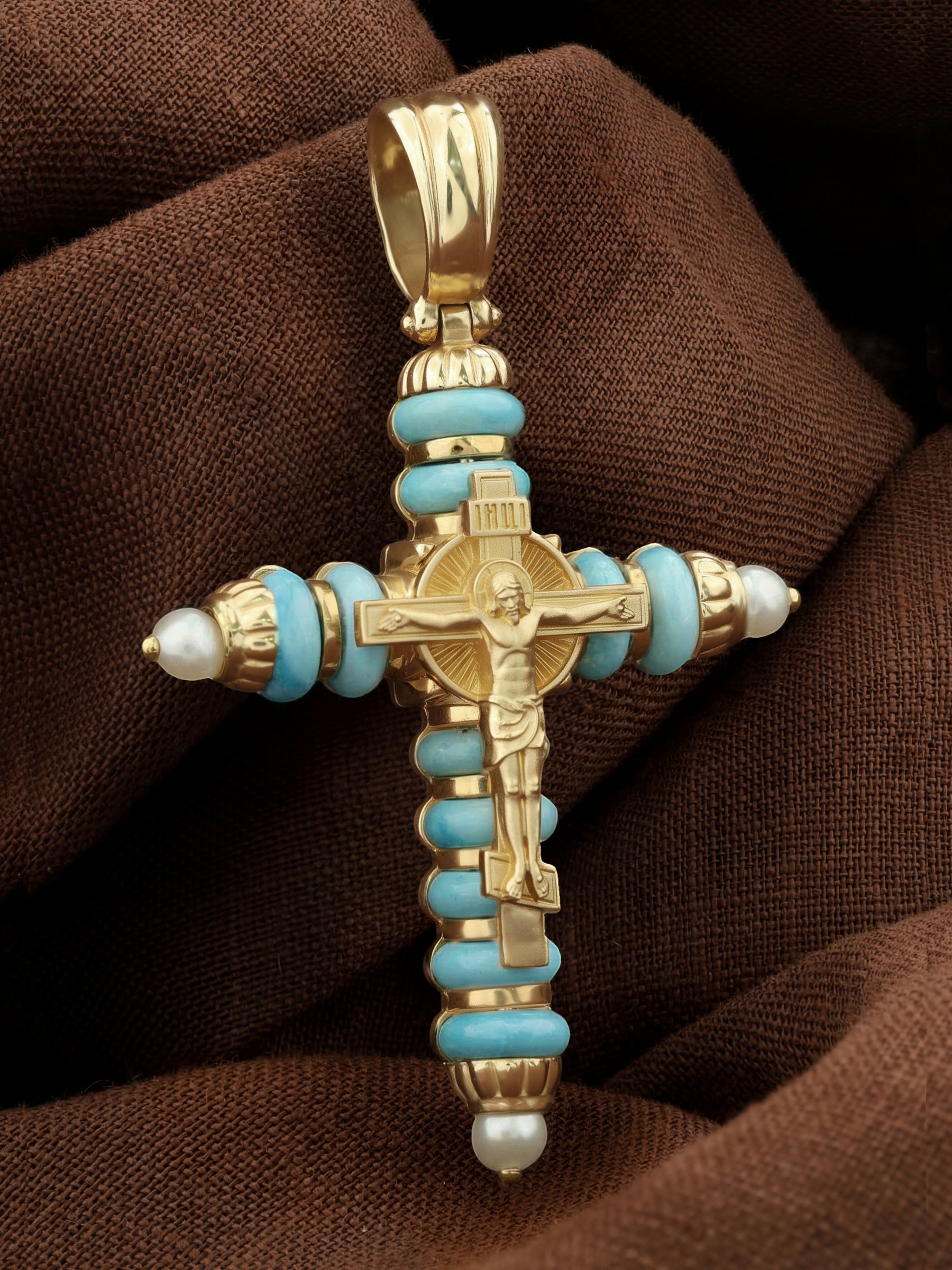 На лицевой стороне креста изображено Распятие Господа и Спасителя нашего Иисуса Христа, отдавшего Себя на смерть для искупления грехов мира. Крест является символом жертвенной любви Всеблагого Бога к падшим людям, всепобеждающим духовным оружием христиан, основанием и средоточием церковной жизни. Над вершиной Распятия помещена надпись «Царь Славы». На верхней перекладине расположена надпись «IНЦI». Она символизирует титло — табличку, на которой, согласно Евангелию, было начертано: Иисус Назорей, Царь Иудейский. Надпись «IC» «ХC»», означает Иисус Христос, помещаются на разных сторонах поперечной перекладины креста. Ниже помещена надпись «НИКА», что означает «победитель».