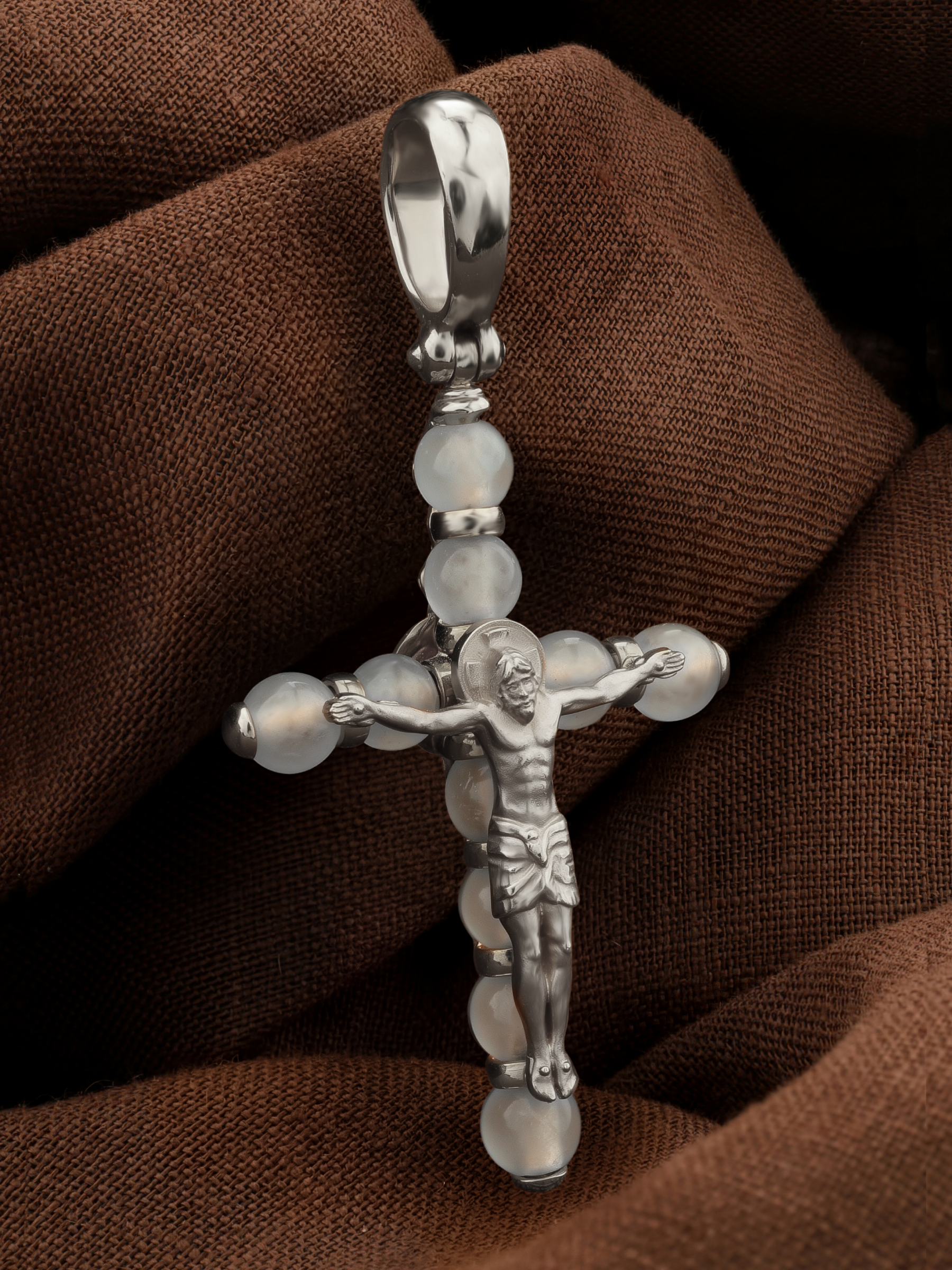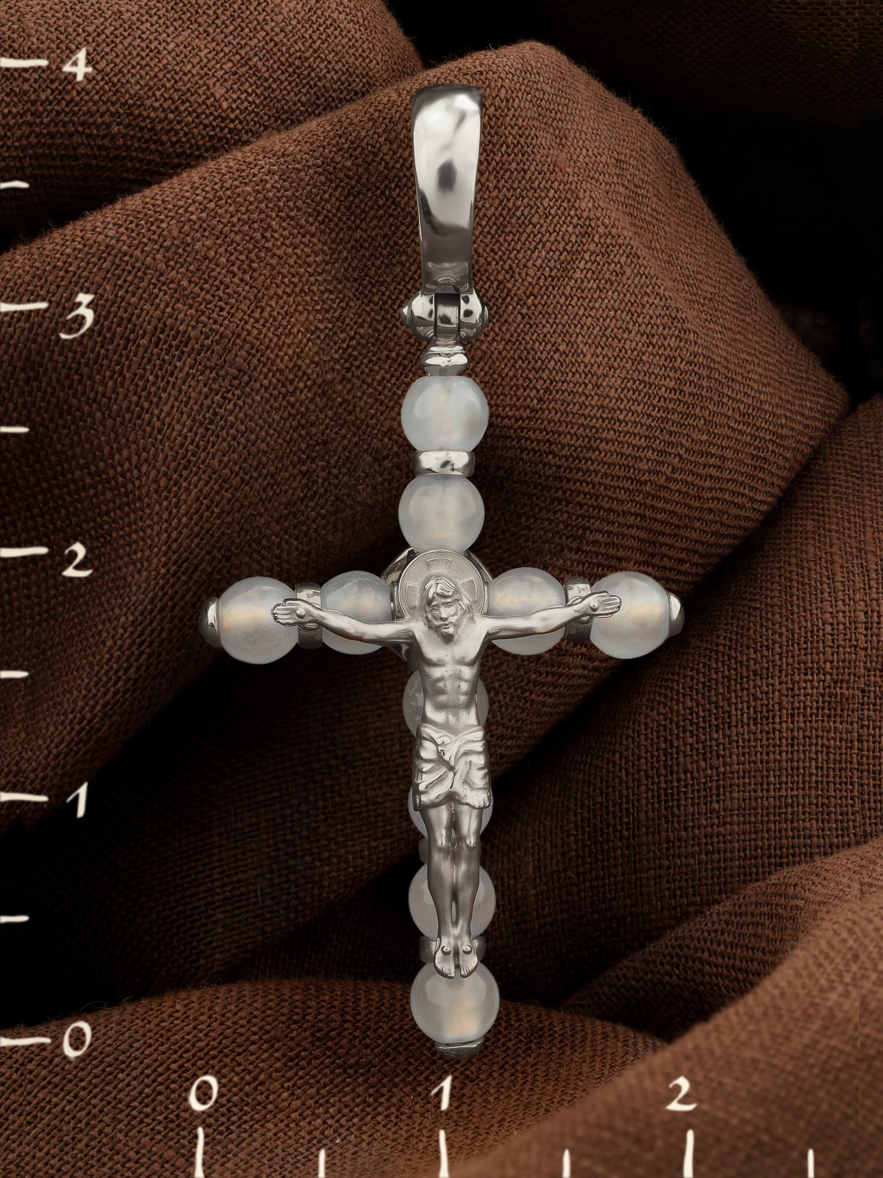 Крест из белого золота c агатом