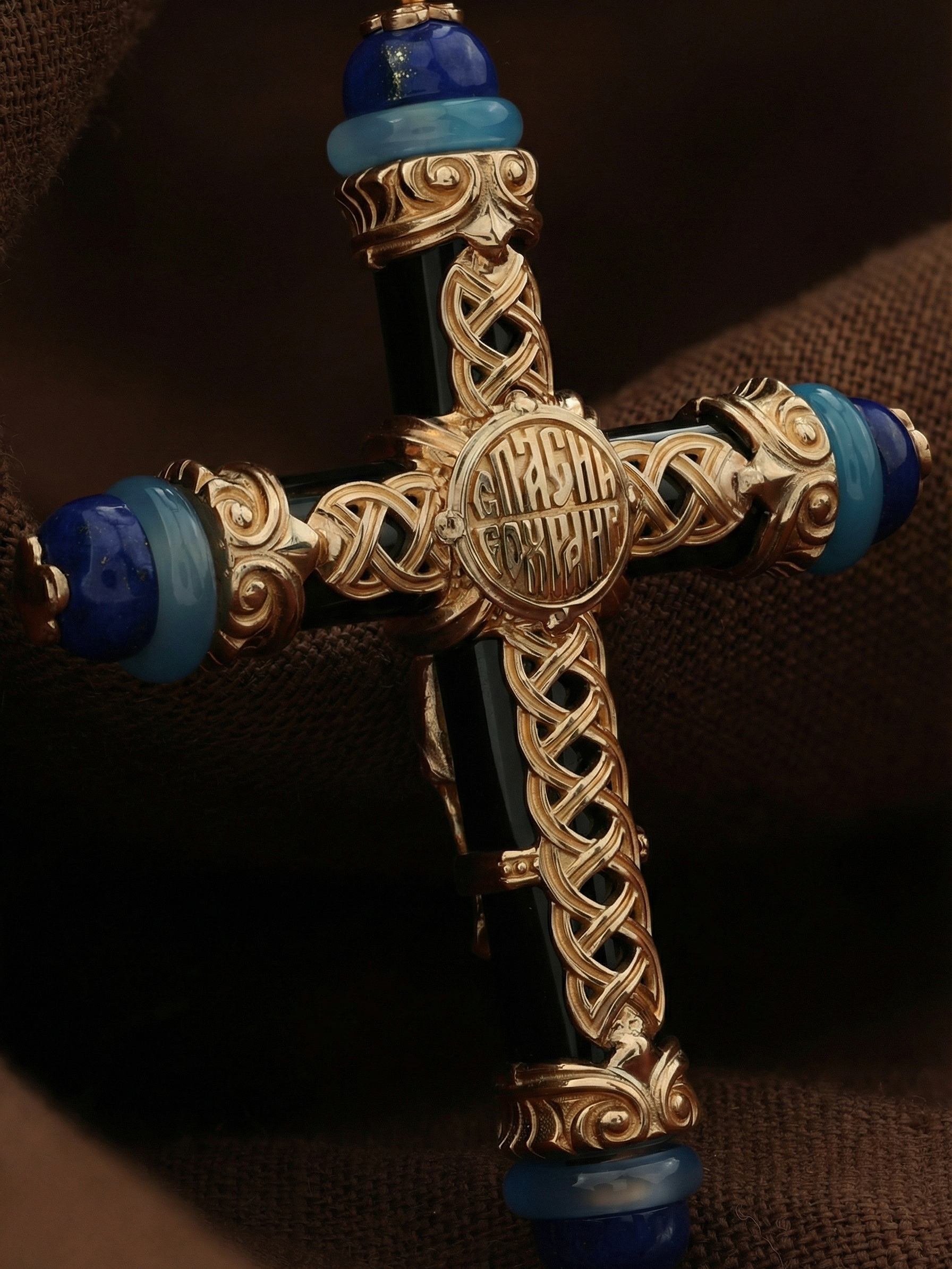 На оборотной стороне креста написана молитва: «Спаси и сохрани». Крест украшен орнаментом.