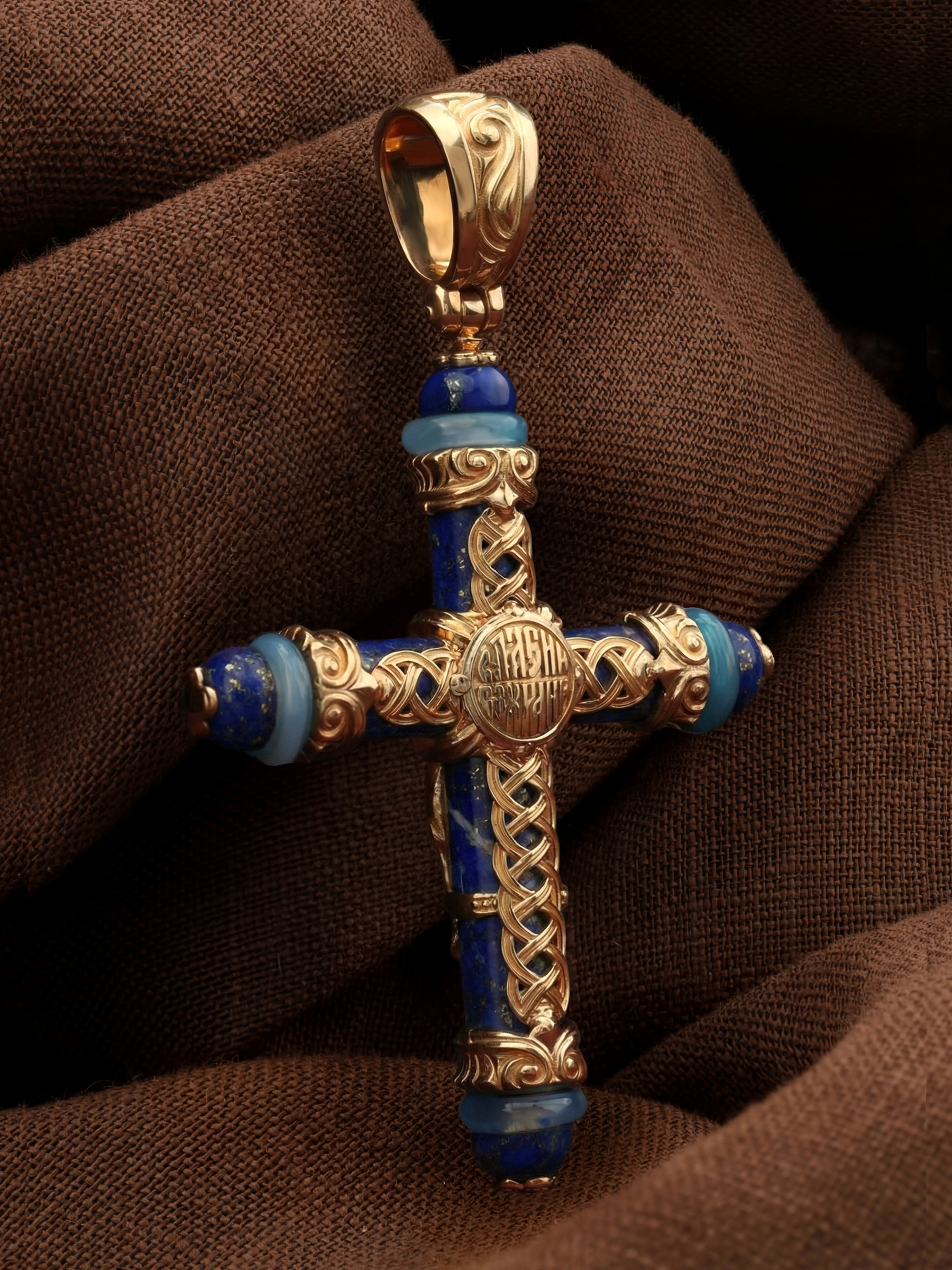 На оборотной стороне креста написана молитва: «Спаси и сохрани». Крест украшен орнаментом.