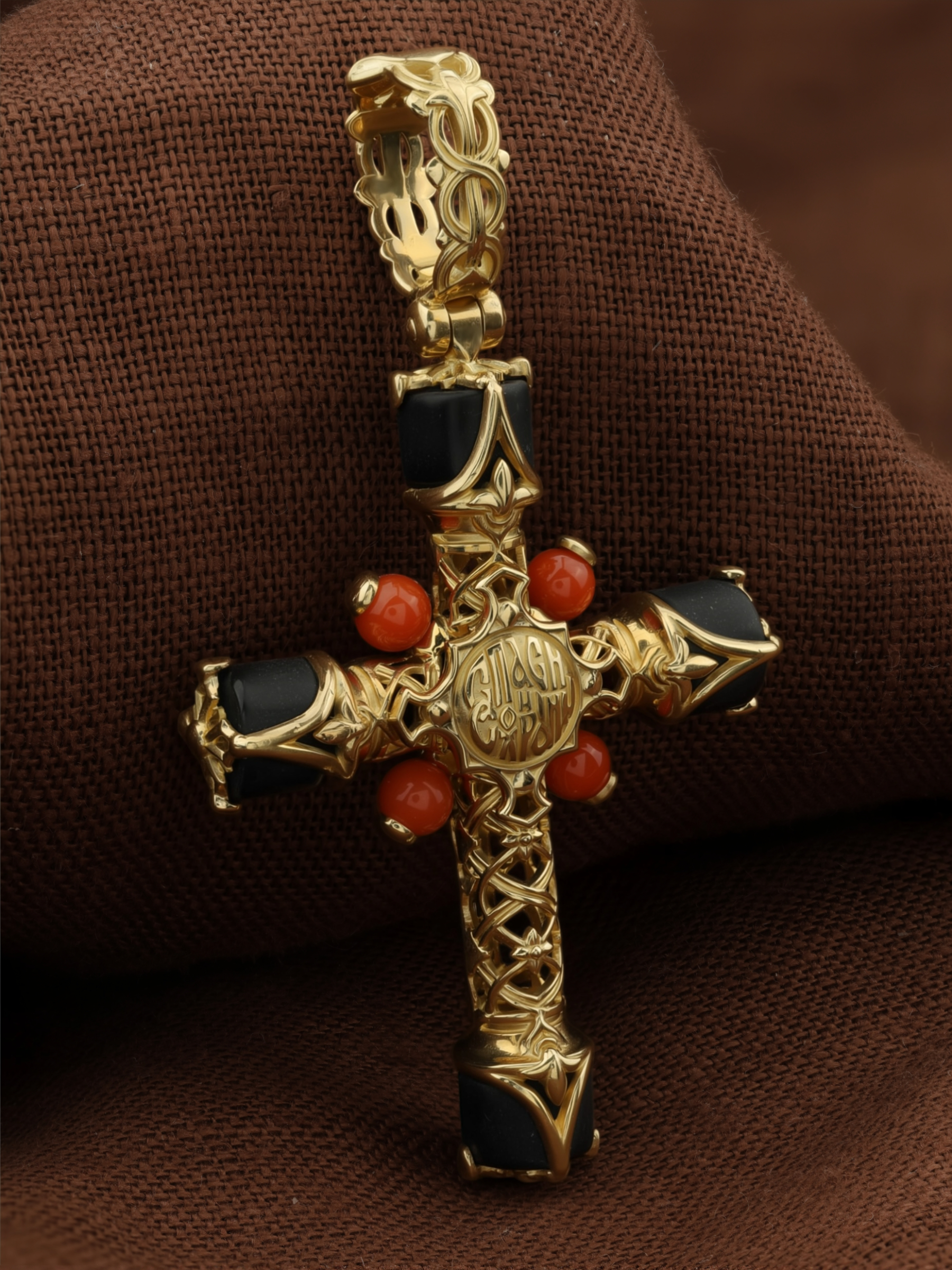 В центральной части оборотной стороны креста помещена молитва: «Спаси и сохрани».