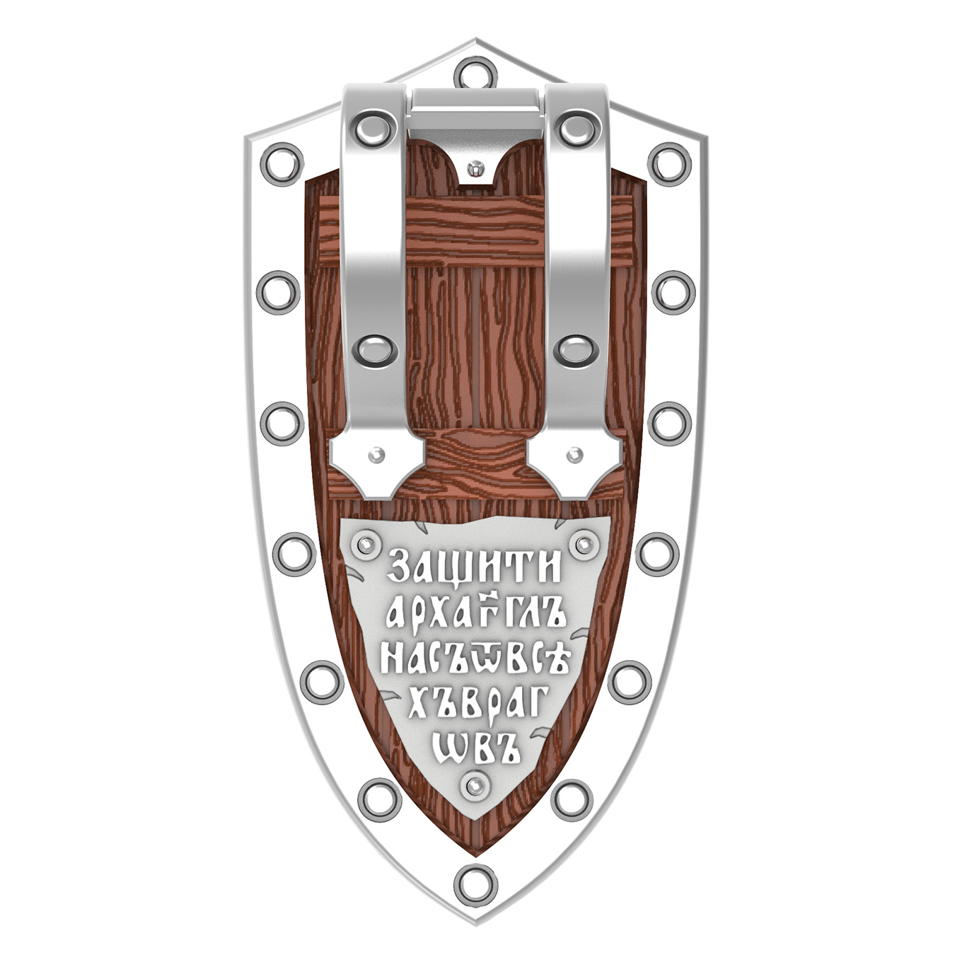 На оборотной стороне образка написаны слова молитвы: «Защити Архангел нас от всех врагов».