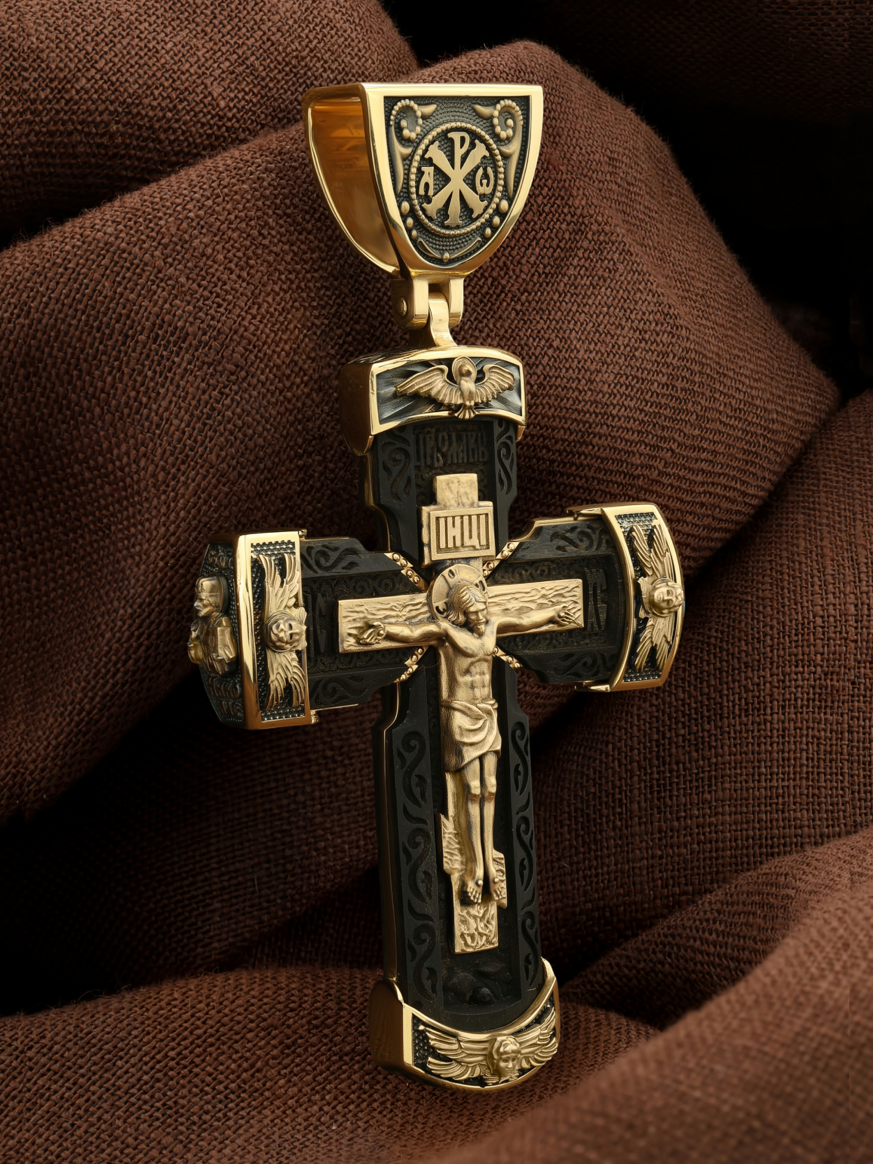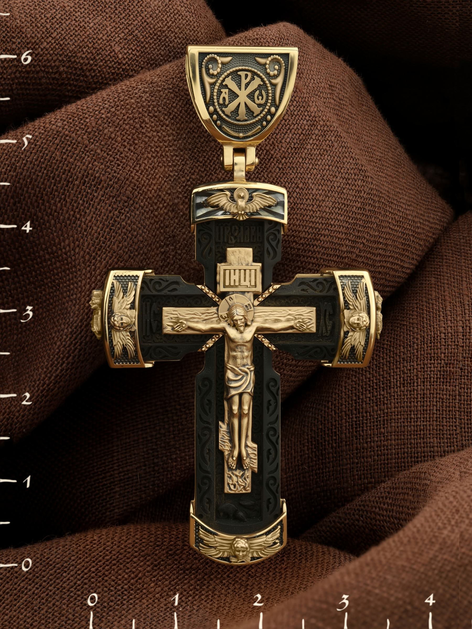 Крест из лимонного золота c эбеновым деревом