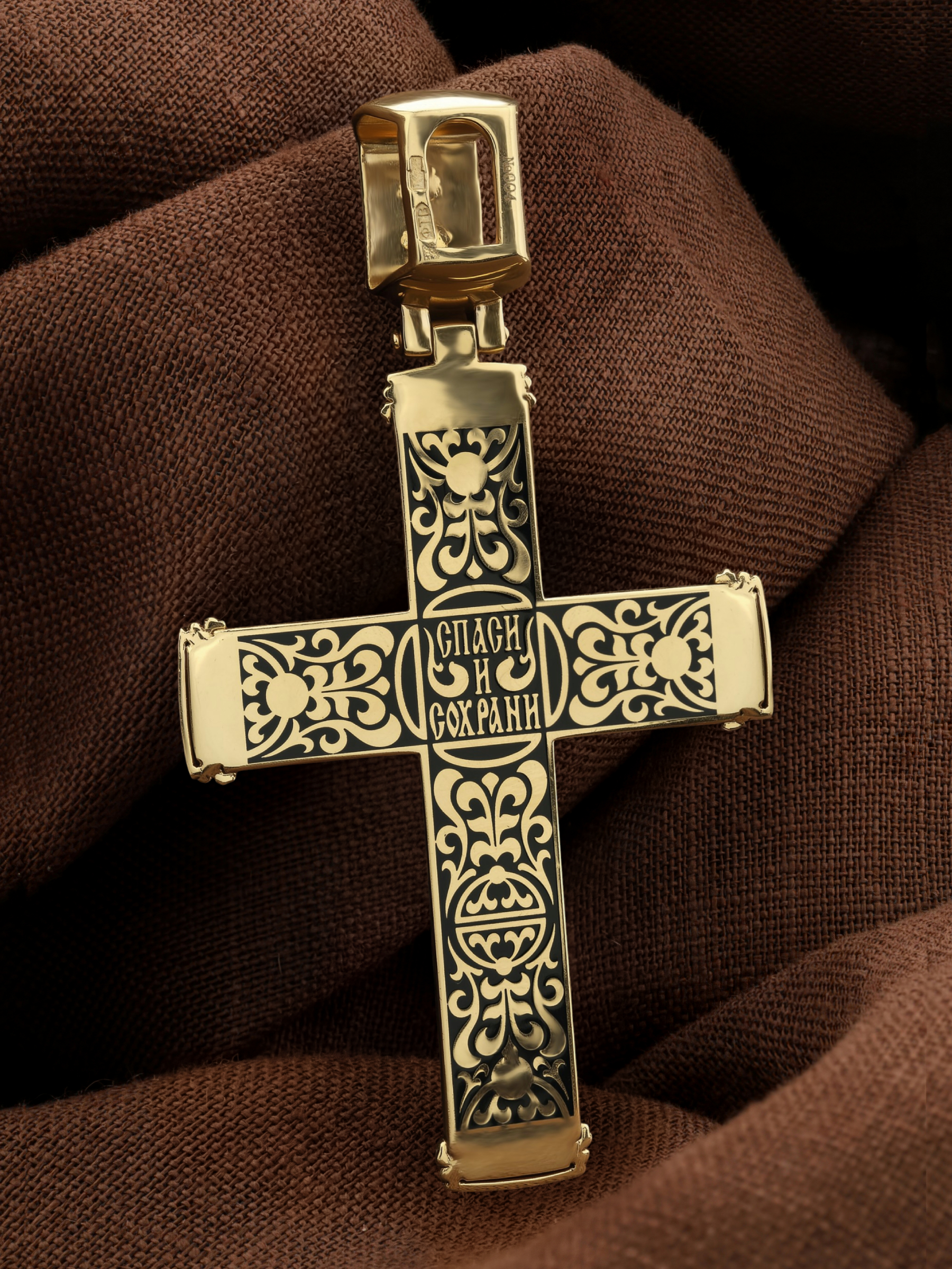 Крест из лимонного золота c эмалью и эбеновым деревом