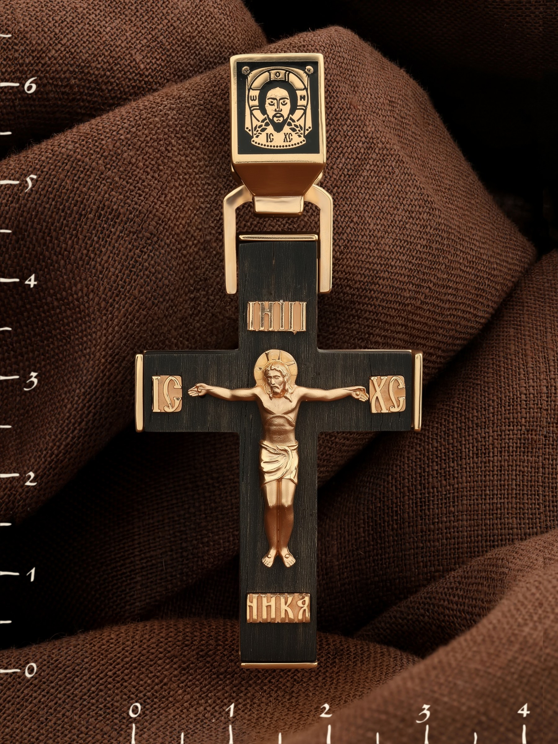 Крест из золота c эмалью и эбеновым деревом