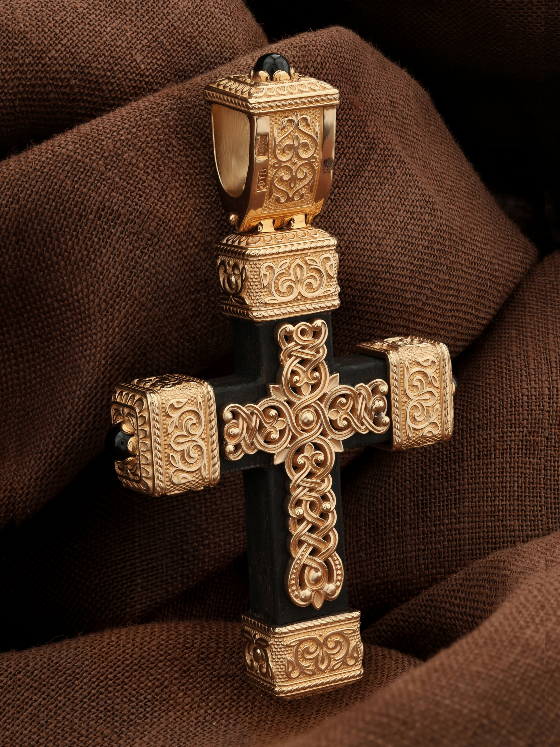 Крест из золота c эмаль, ониксом и эбеновым деревом