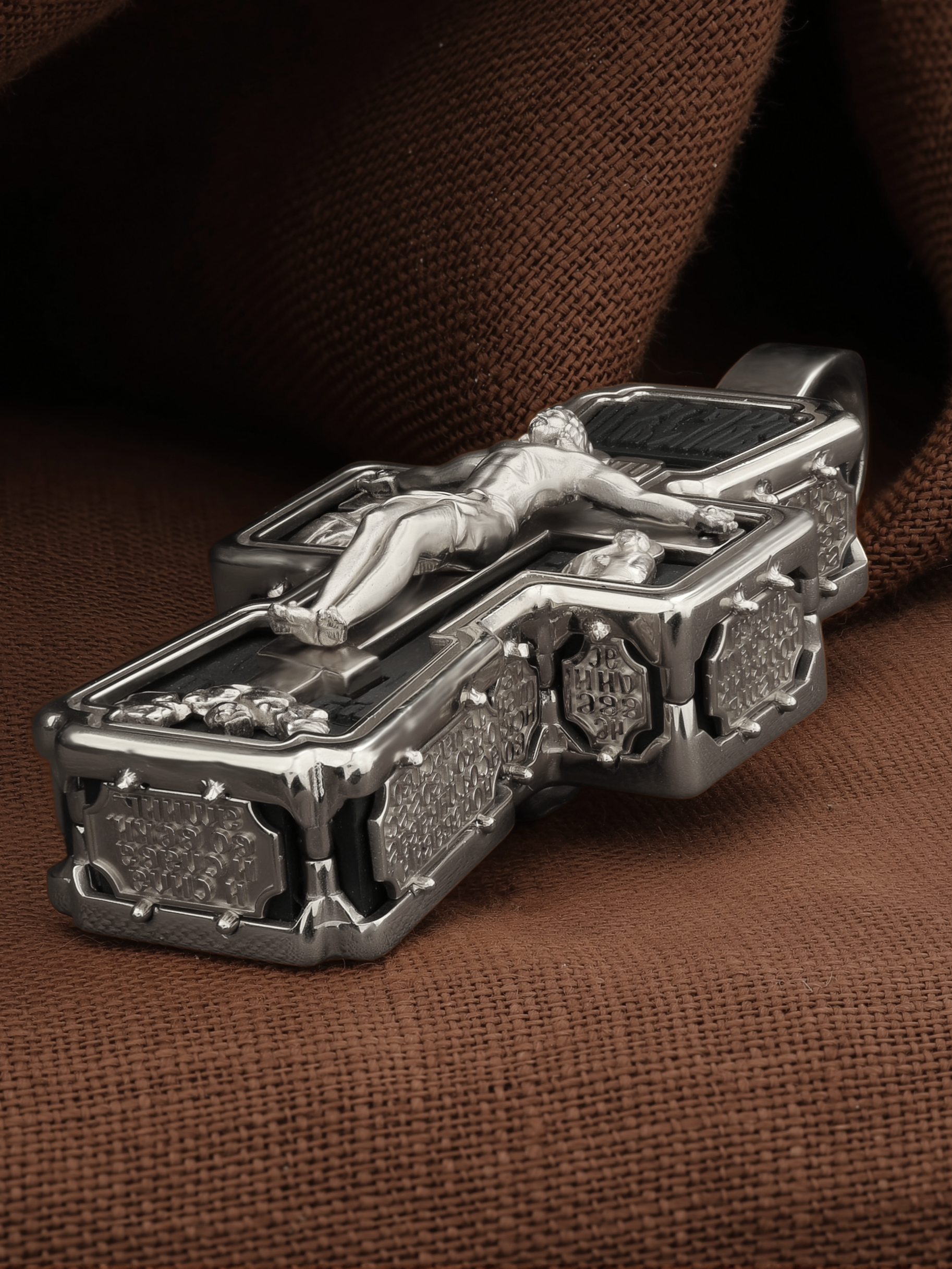 Крест из белого золота c эбеновым деревом